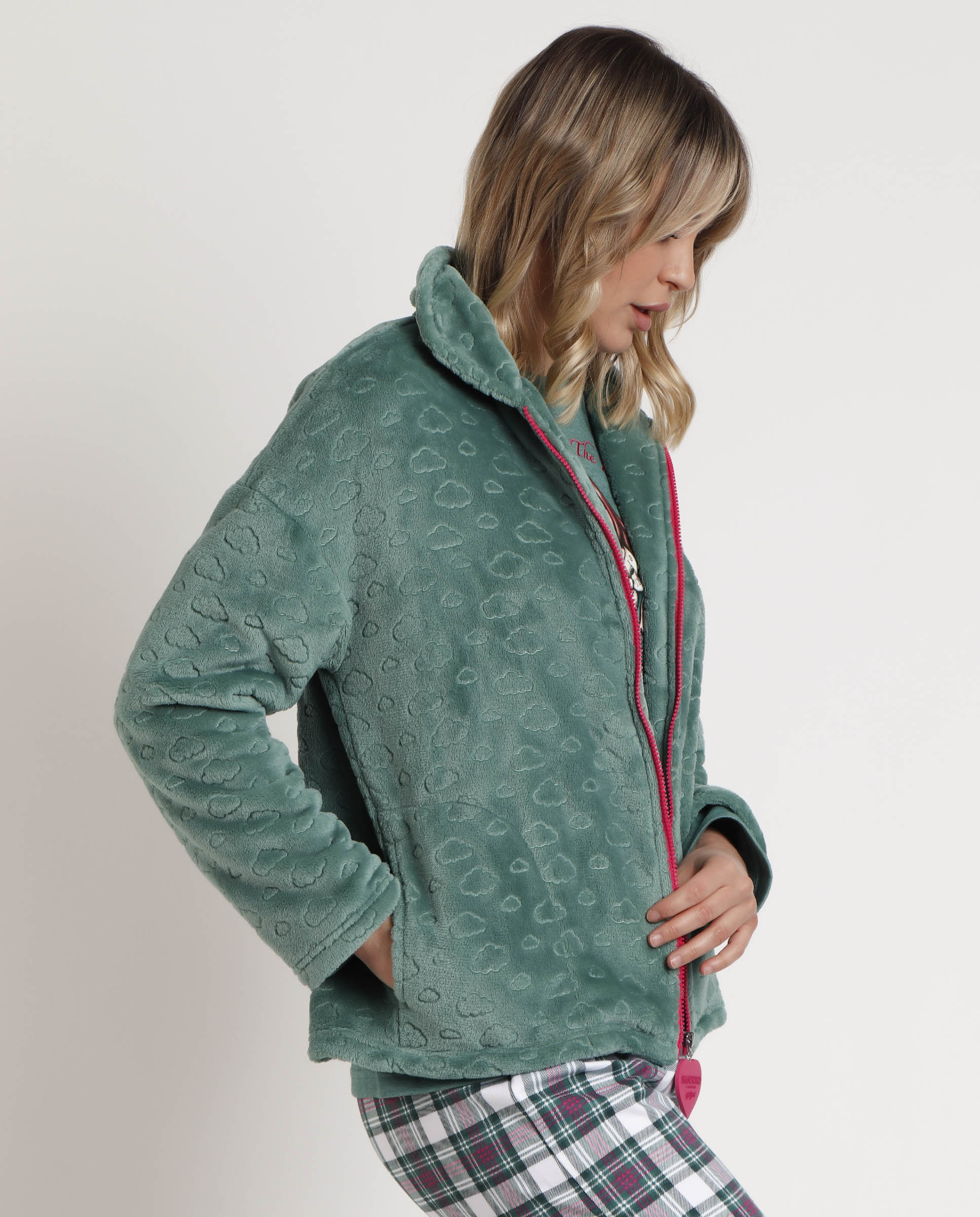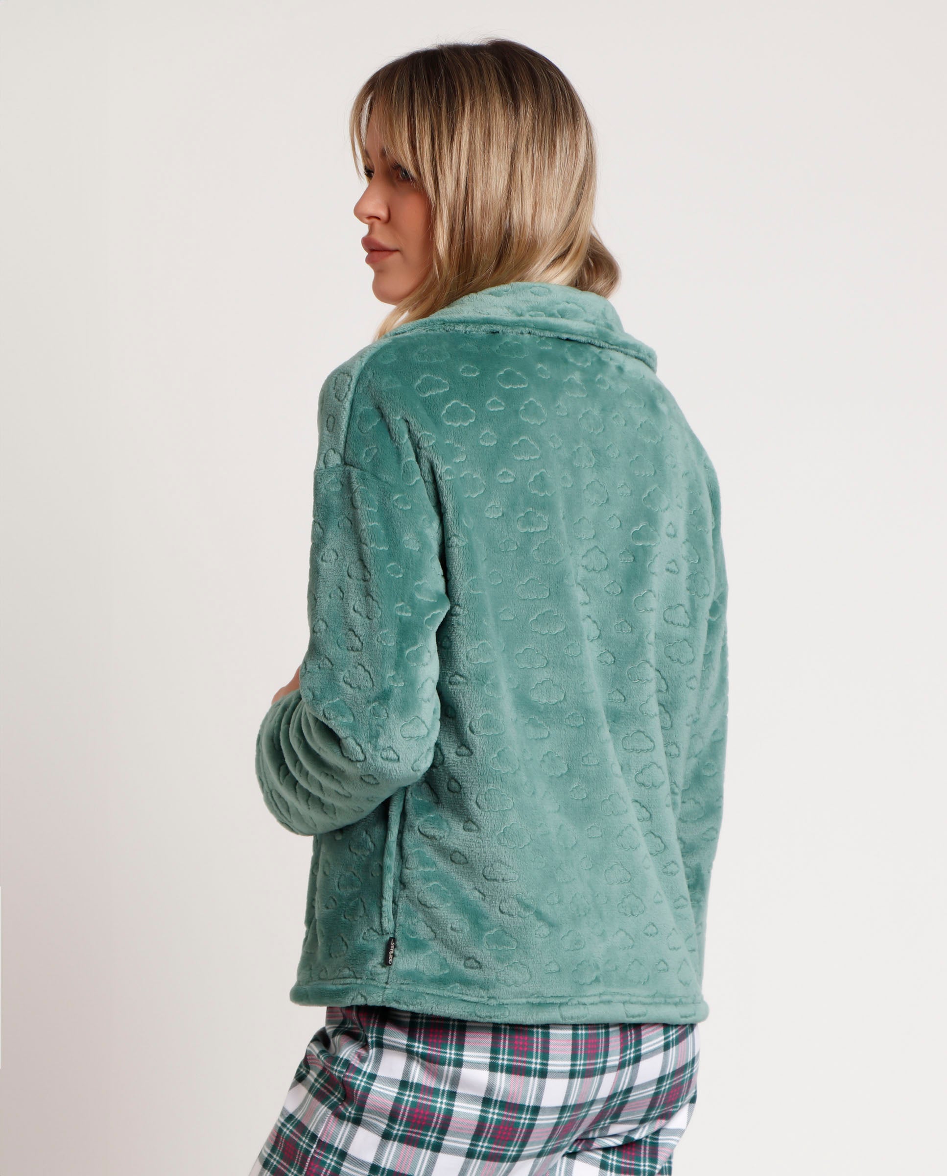 * Bata de tejido especial jacquard corel, muy calentito, en color verde hoja, con bolsillos.