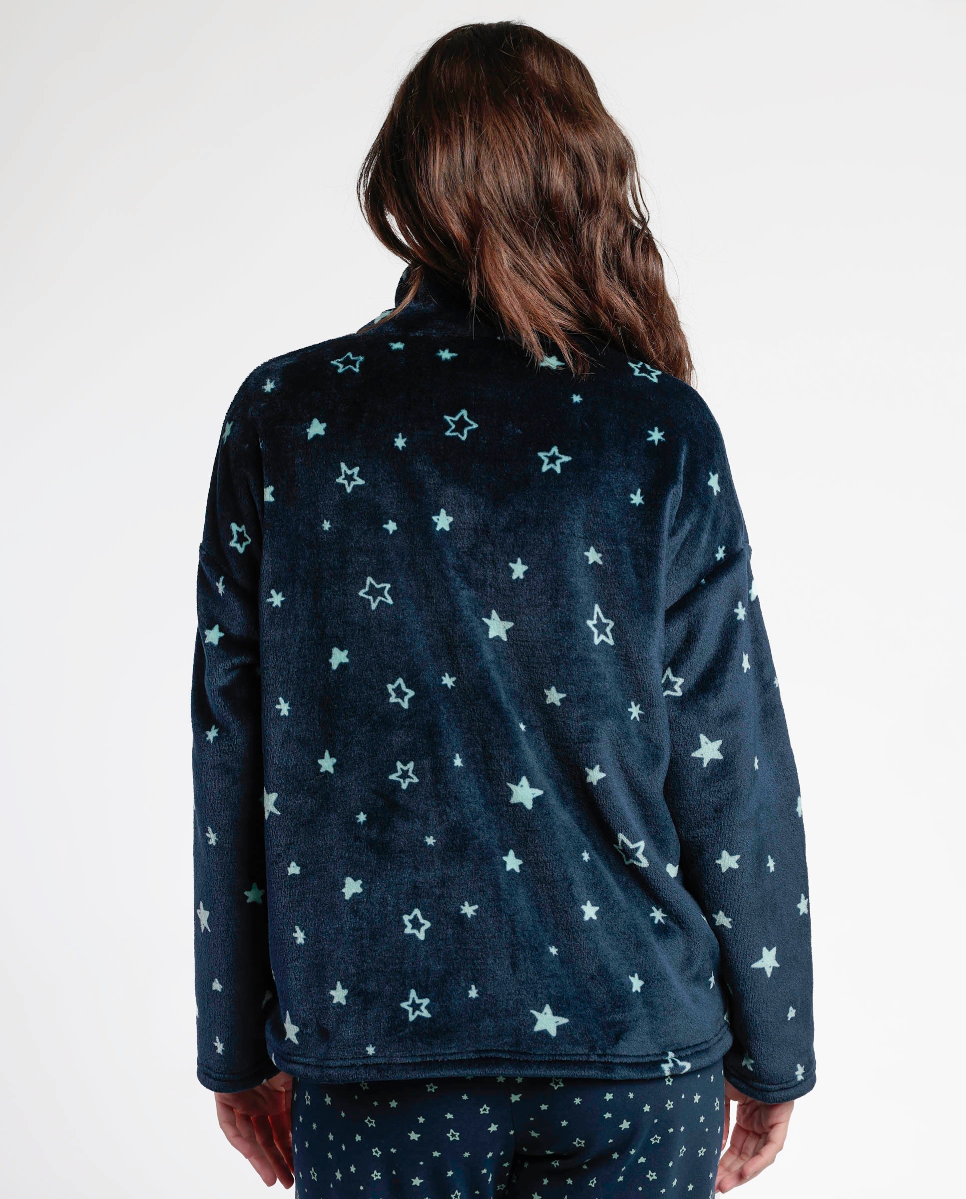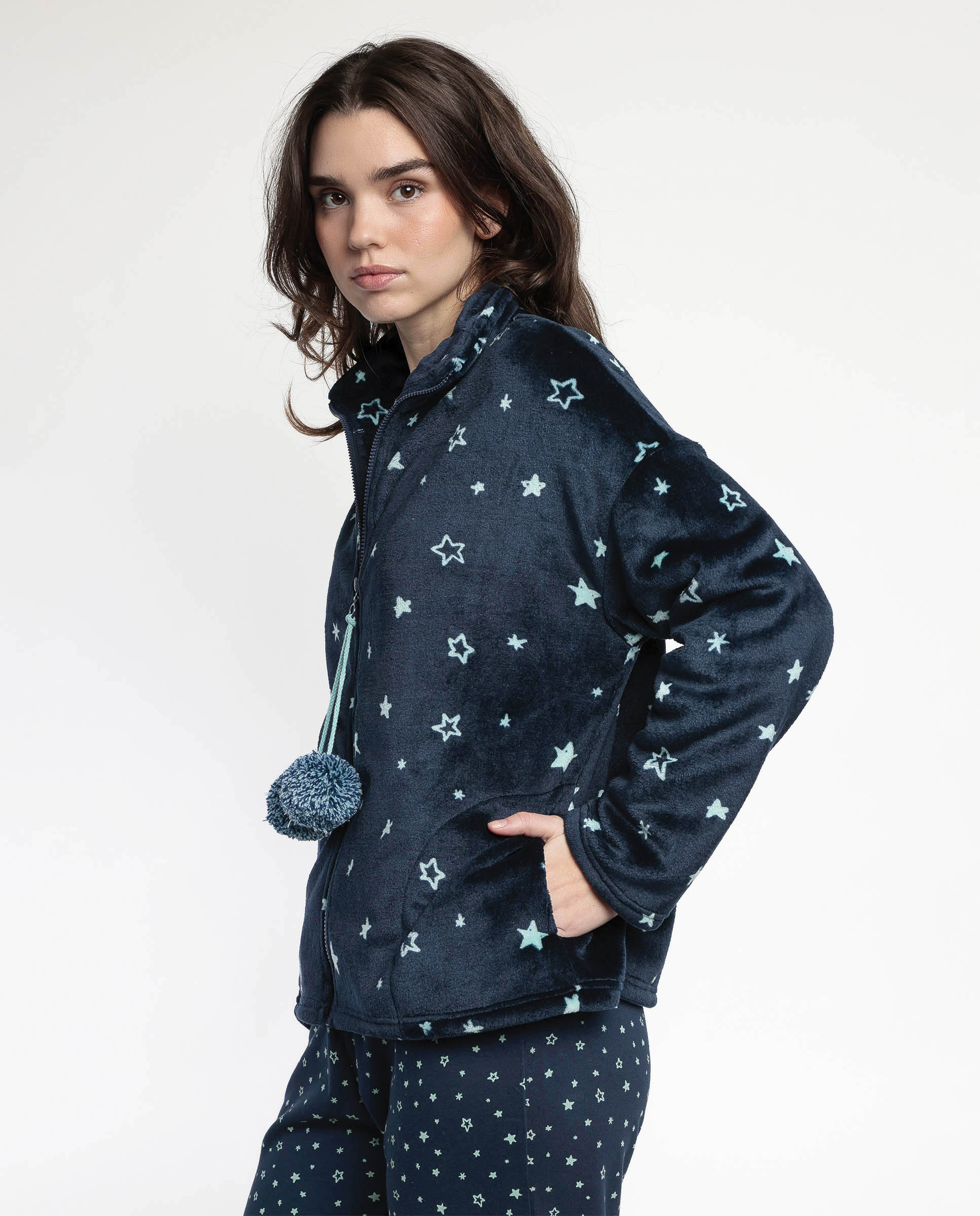 * Bata de tejido polar muy calentito, corel, de manga larga, en color marino.