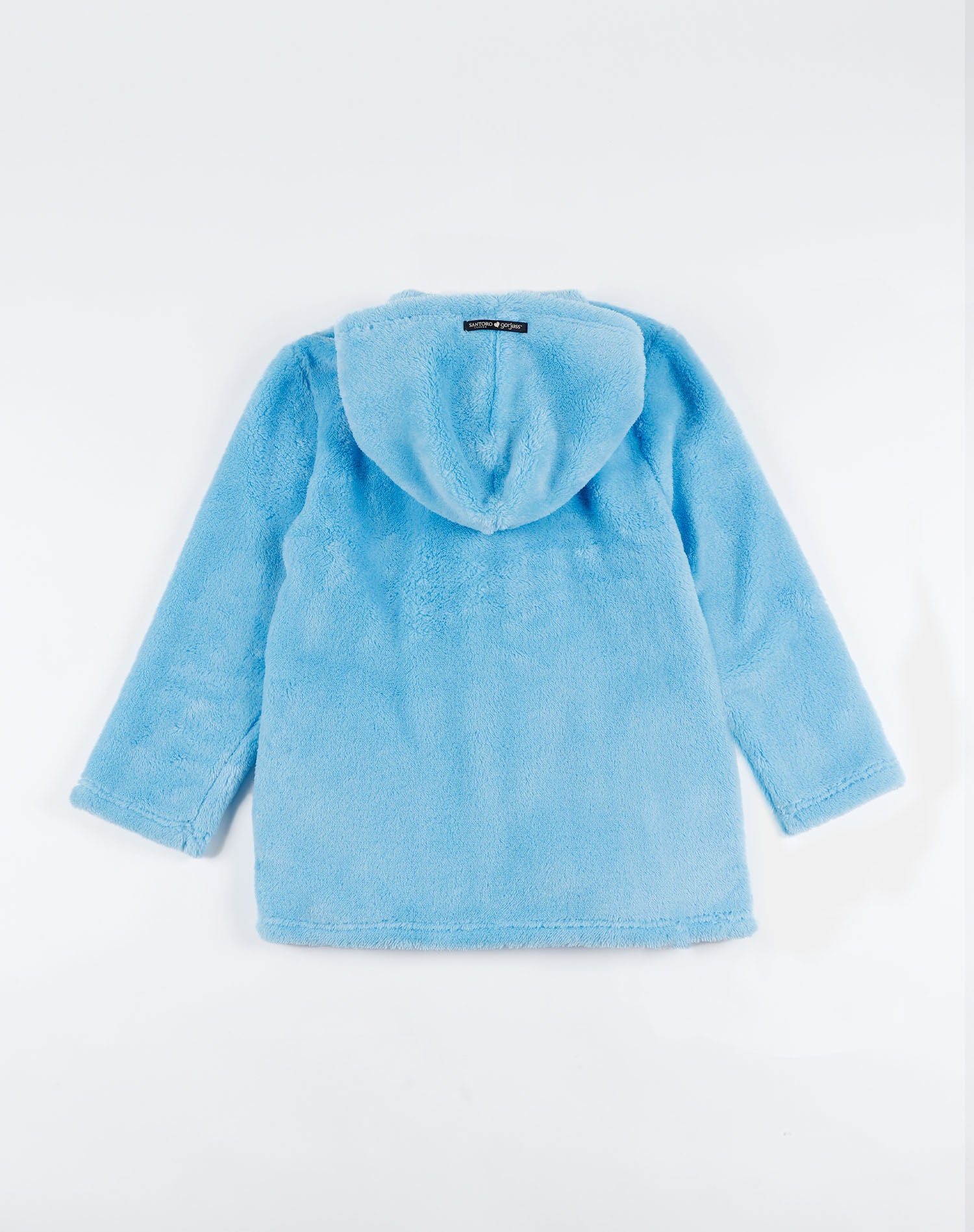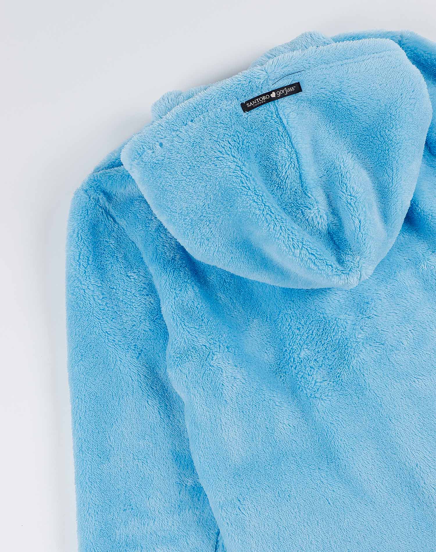 * Bata de tejido especial corel muy calentito, en color azul con bolsillos y capucha.