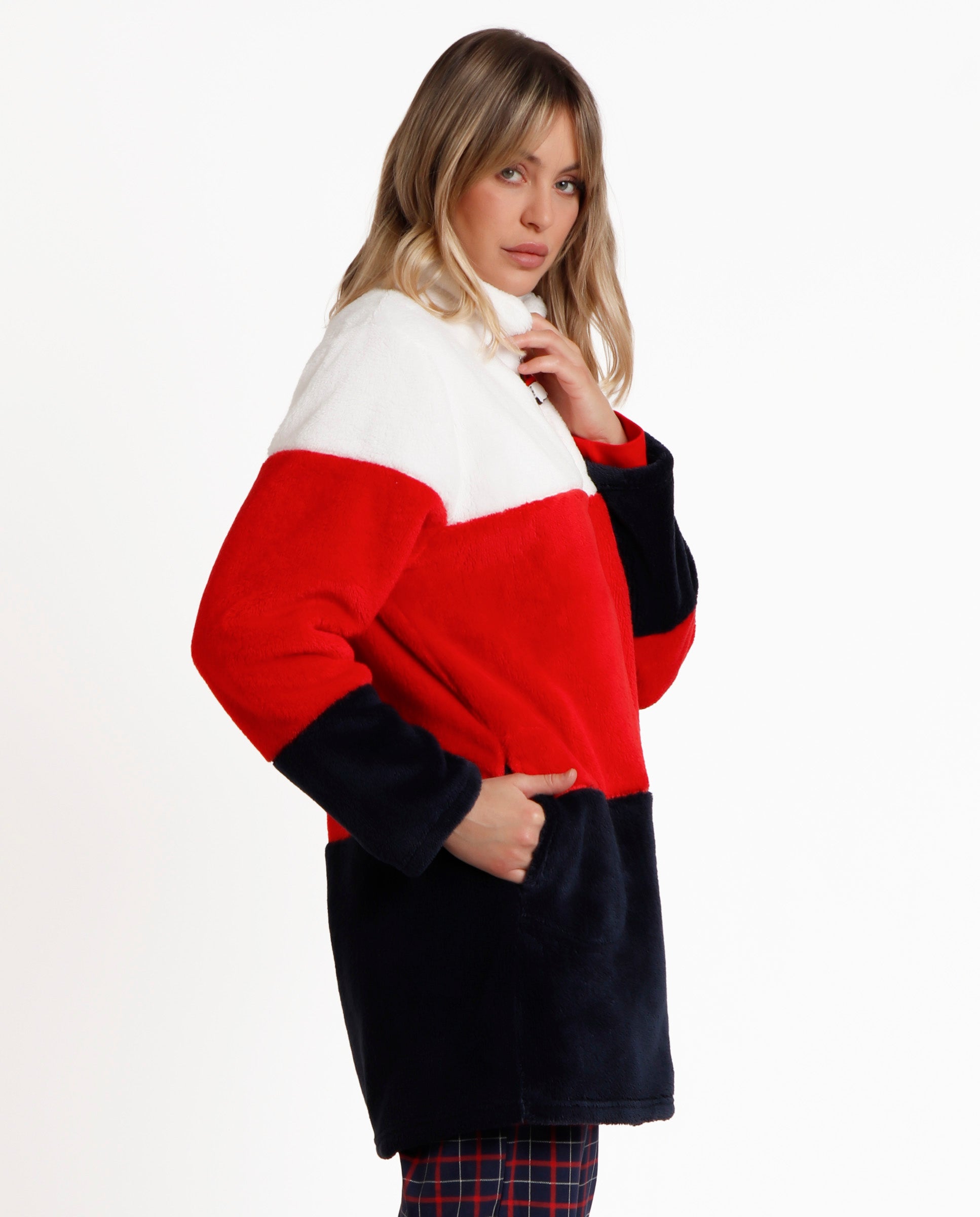 * Bata de tejido especial corel muy calentito, de color rojo, con bolsillos.