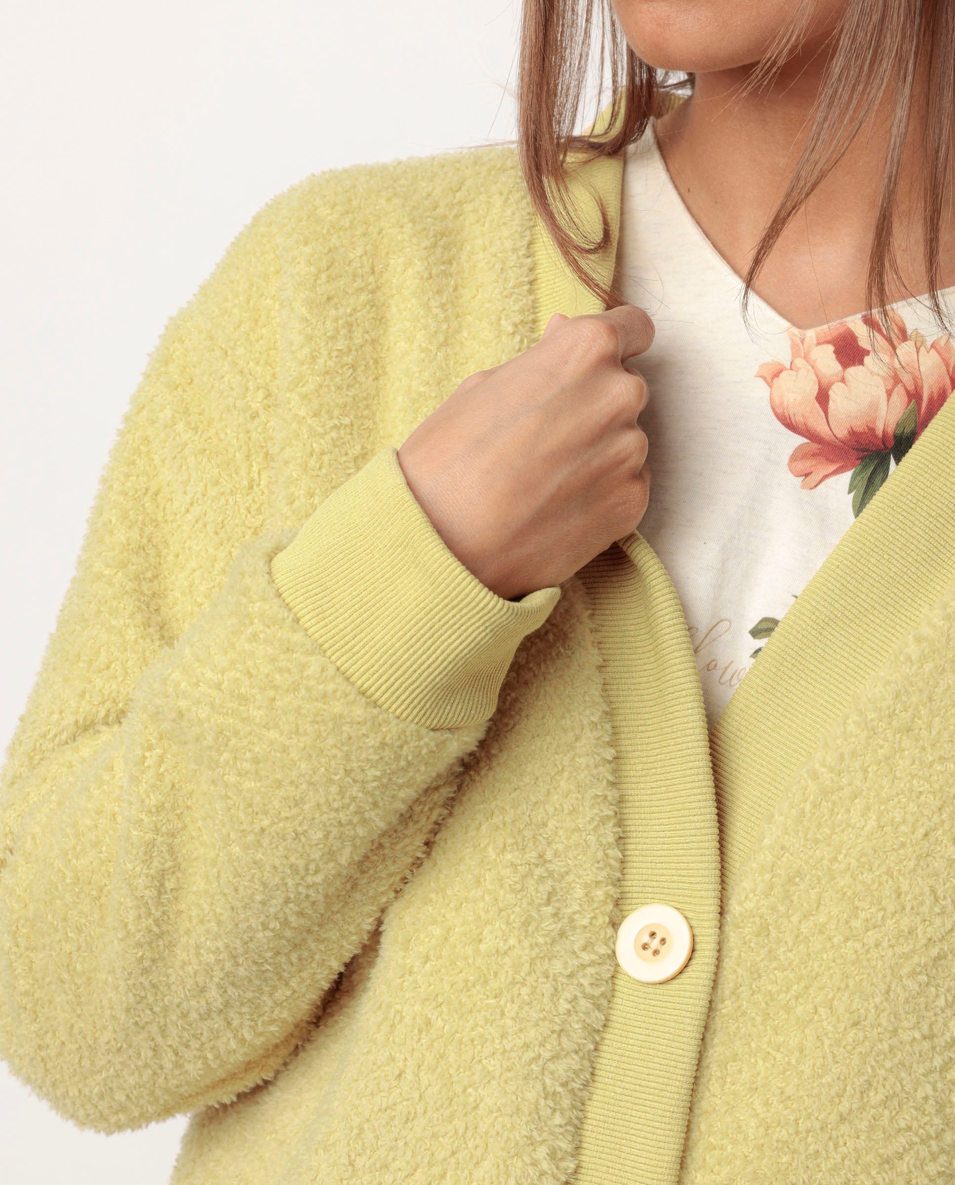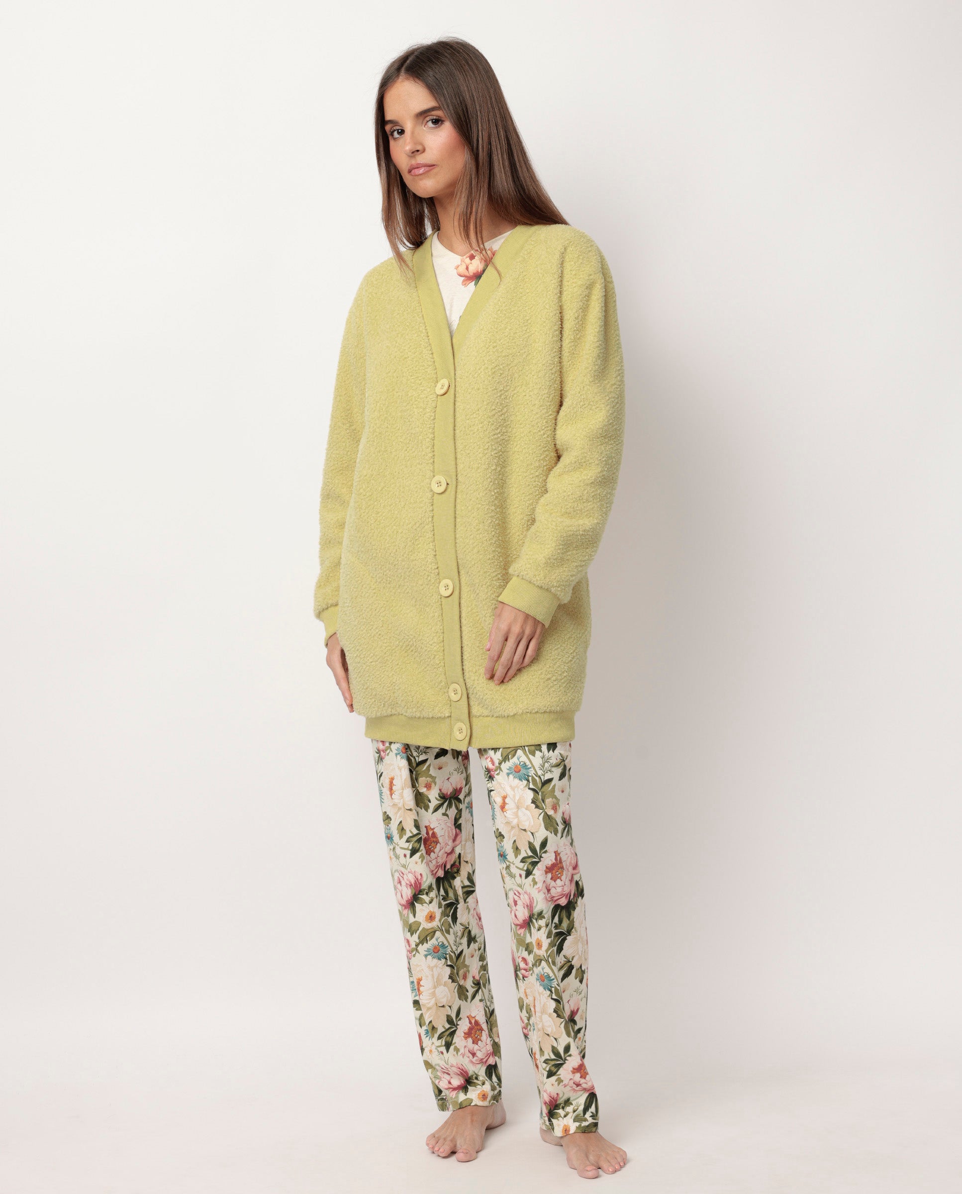 * Bata de tejido polar muy calentito, corel, de manga larga, en color lima.