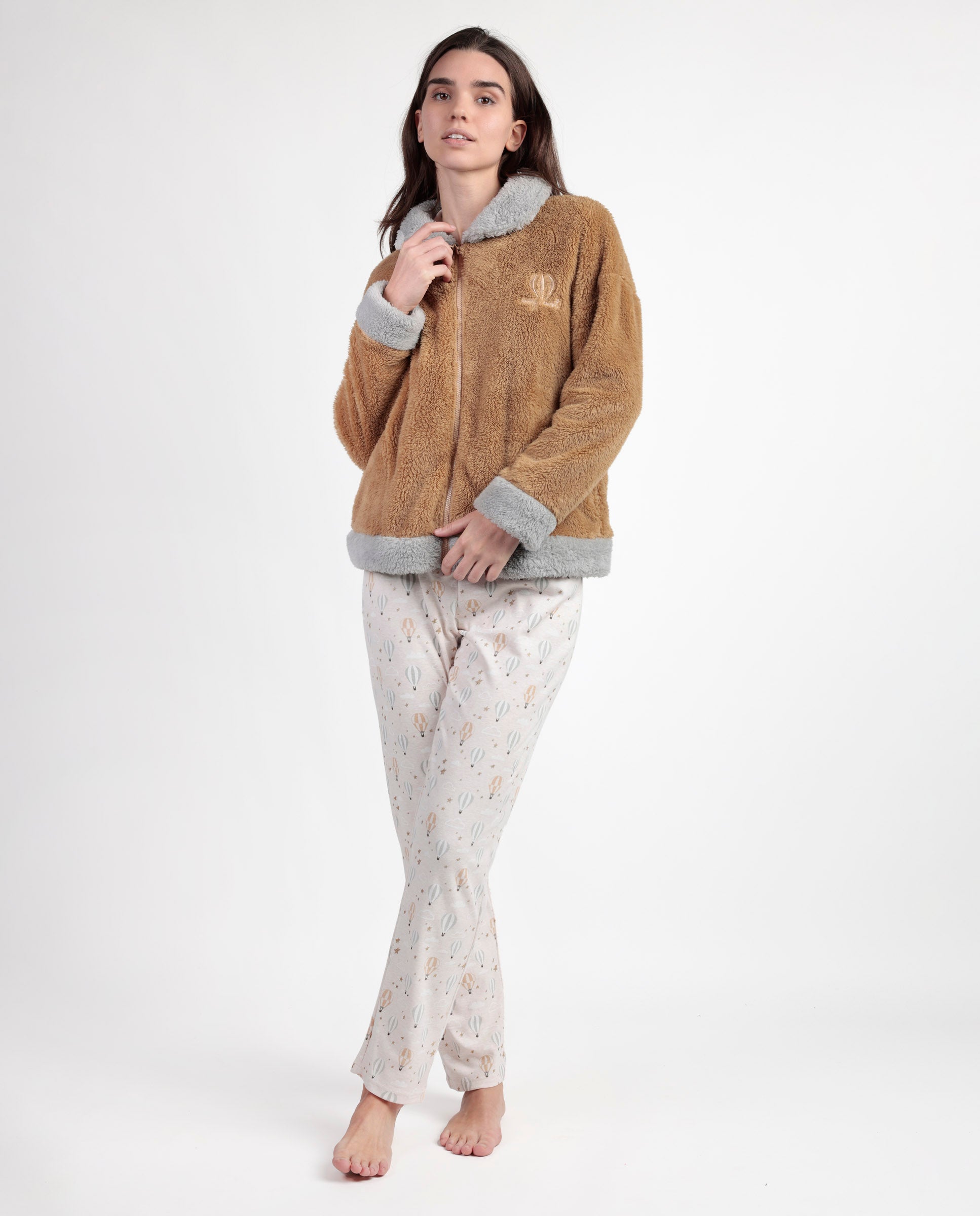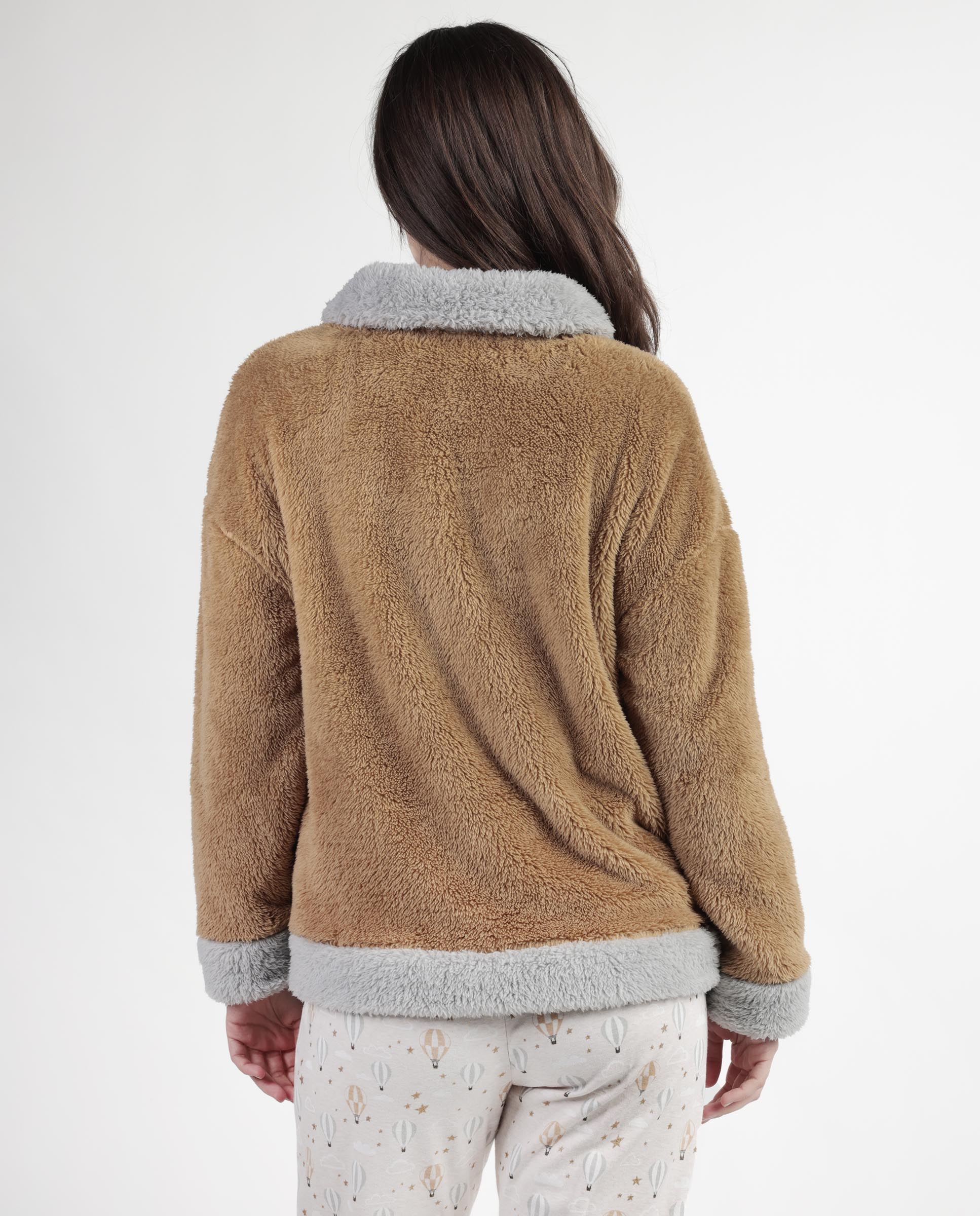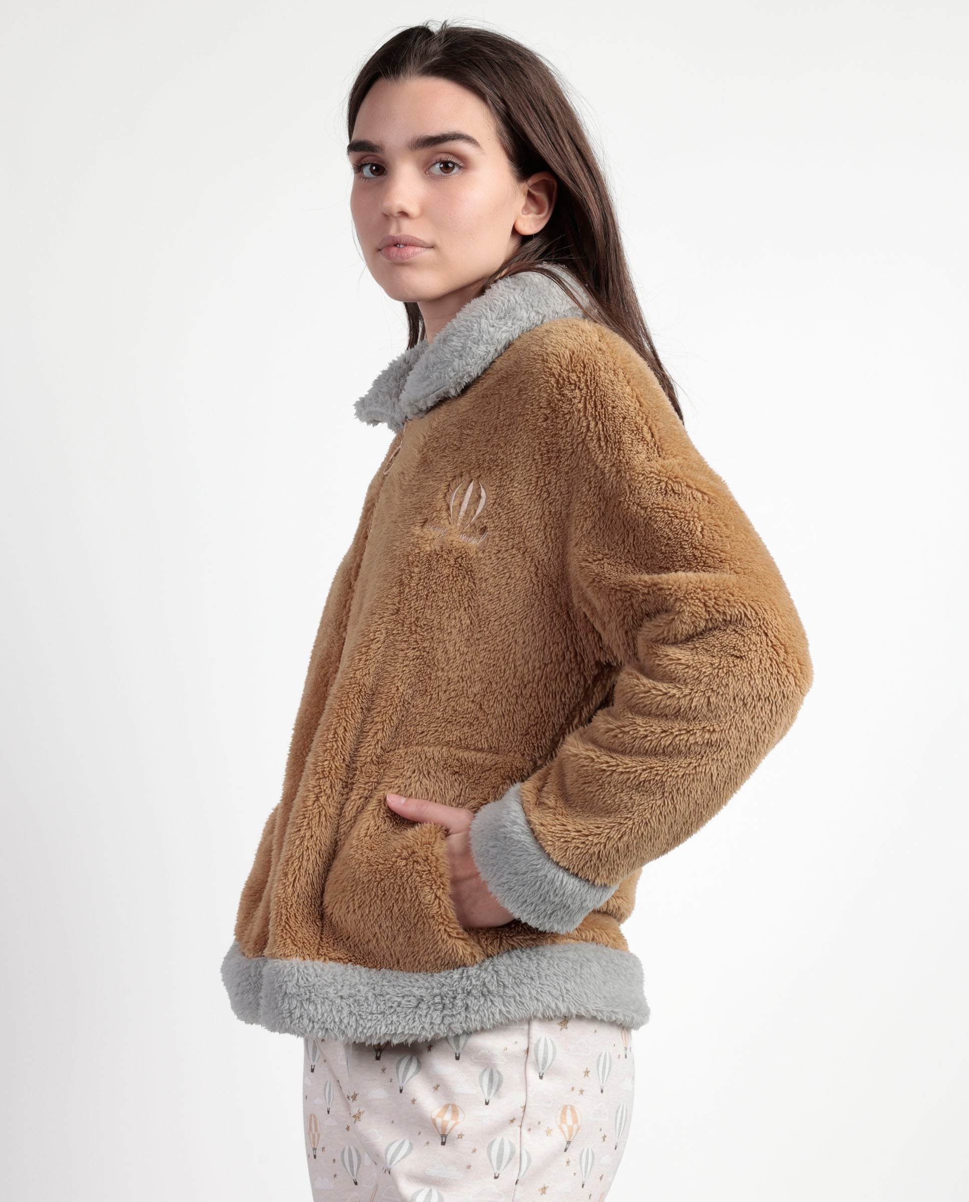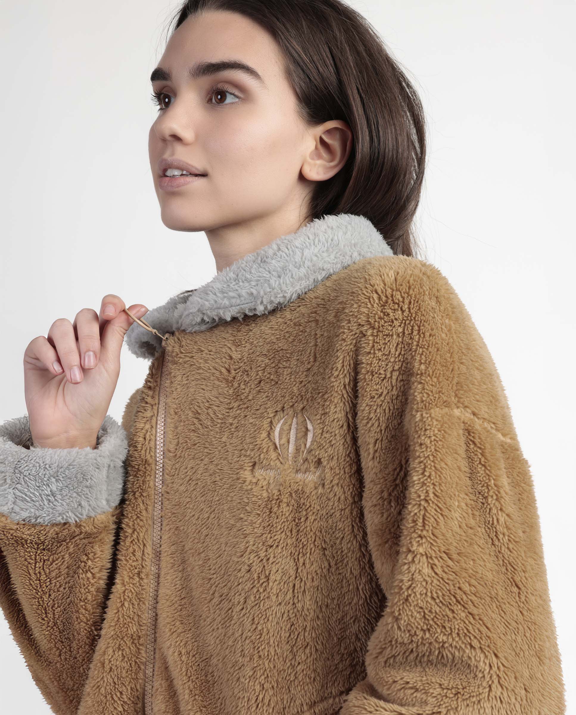 * Bata de tejido polar muy calentito, corel, de manga larga, en color camel.