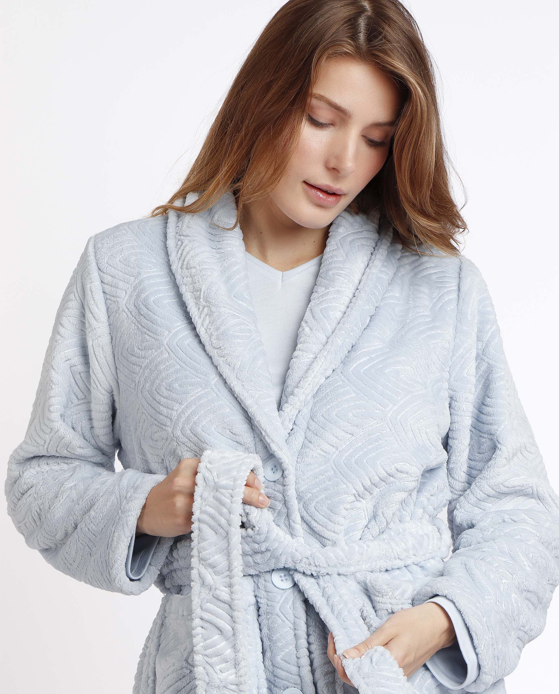 * Bata de tejido especial jacquard Corel muy calentito, de color cielo.