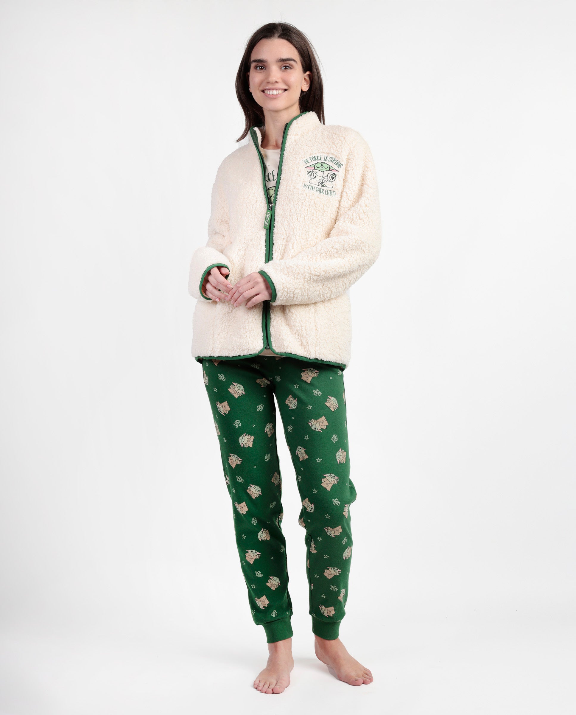 Bata Manga Larga Calentita Grogu Cute para Mujer