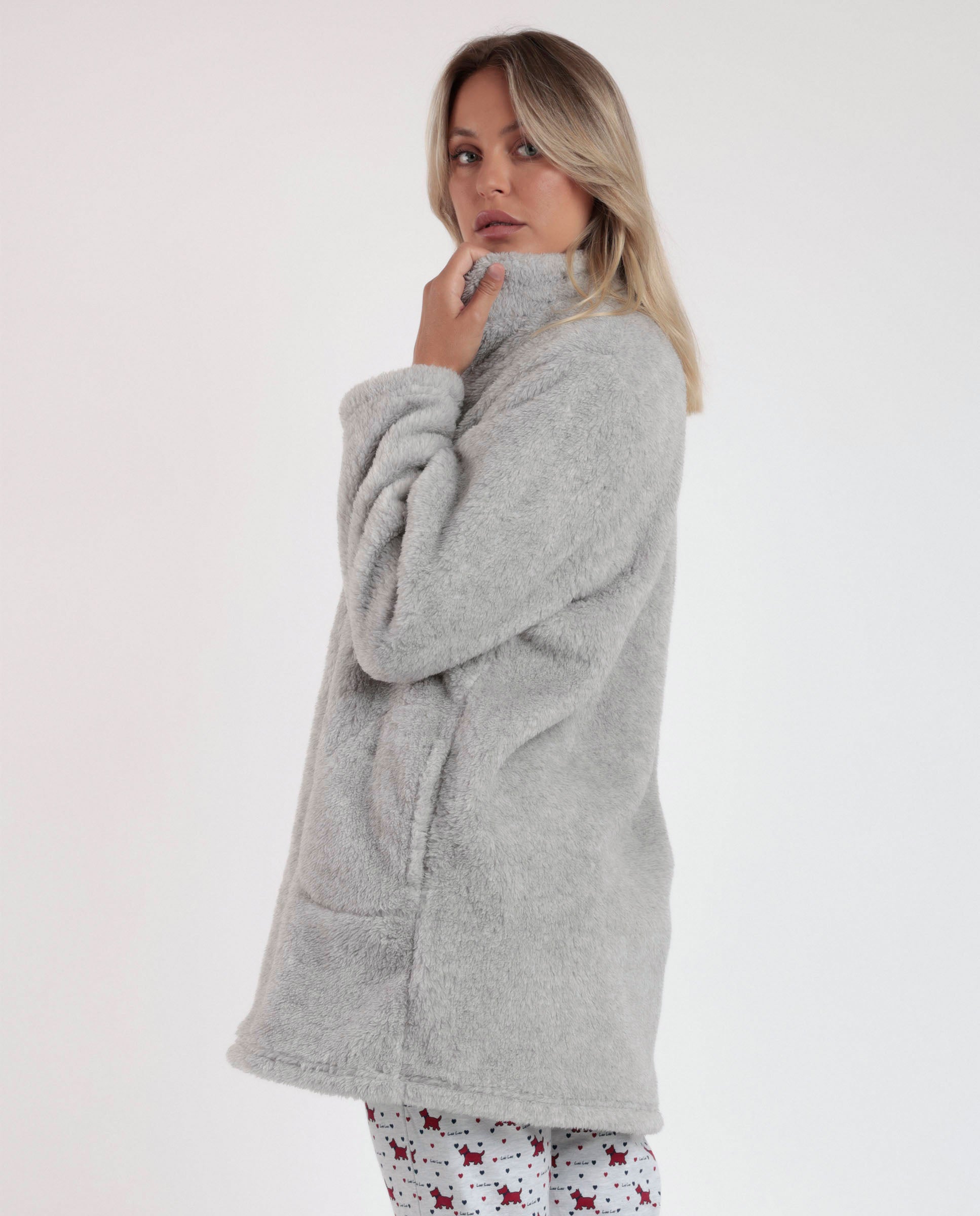 Bata Manga Larga Calentita Lou Lou Grey para Mujer