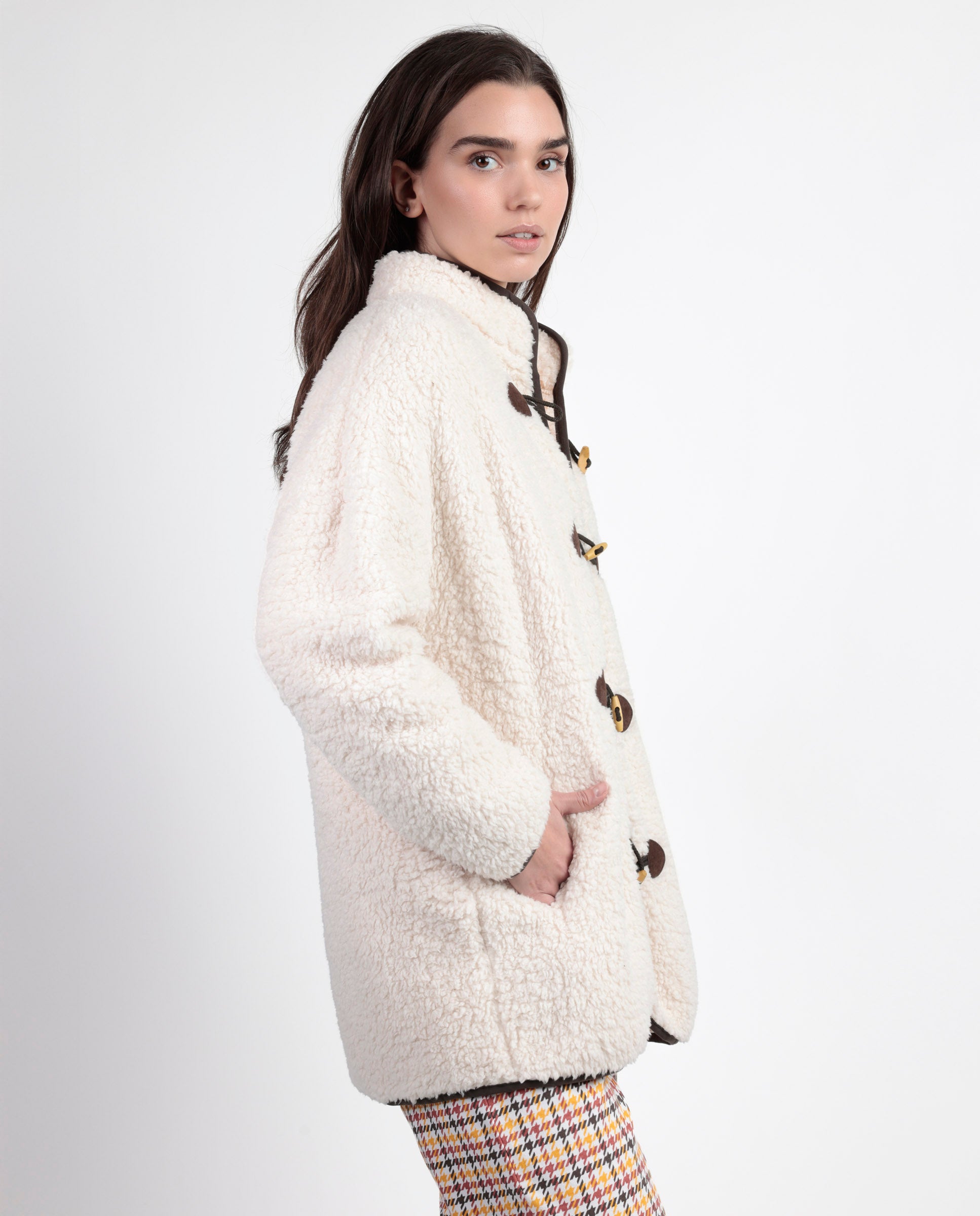 * Bata de tejido polar muy calentito, borreguito, de manga larga, en color beige.
