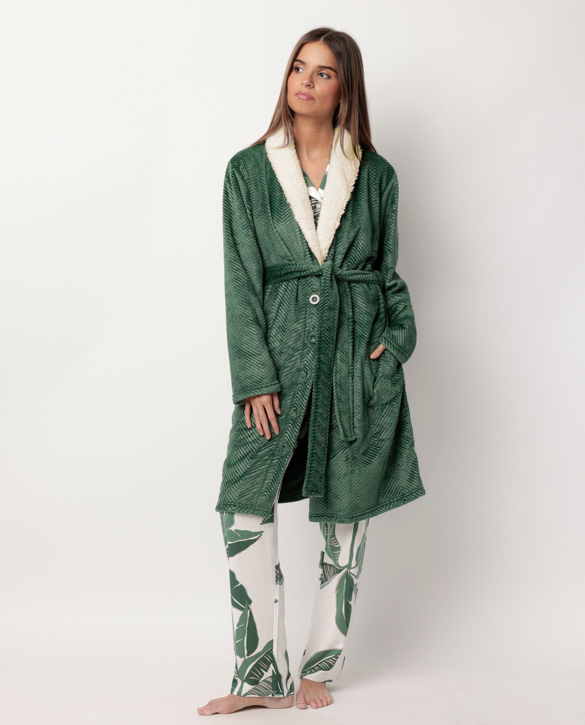 Bata Manga Larga Calentita Luxury Leaves Hojas para Mujer