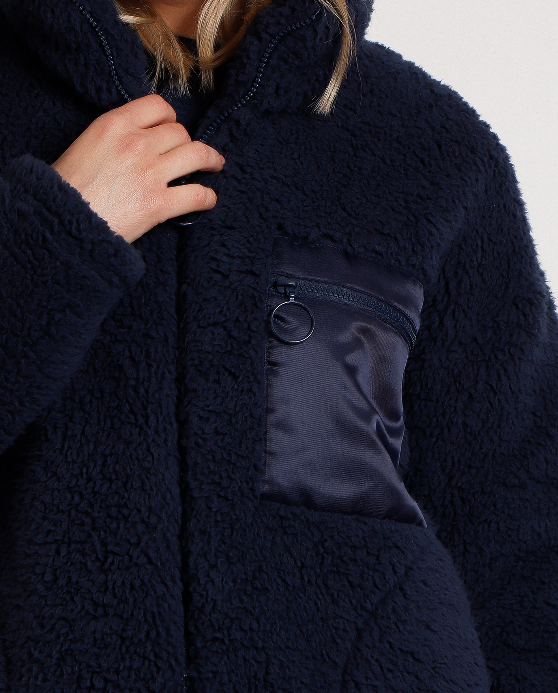 * Bata de tejido especial de borreguito, muy calentito, de color azul, con detalles bordados.