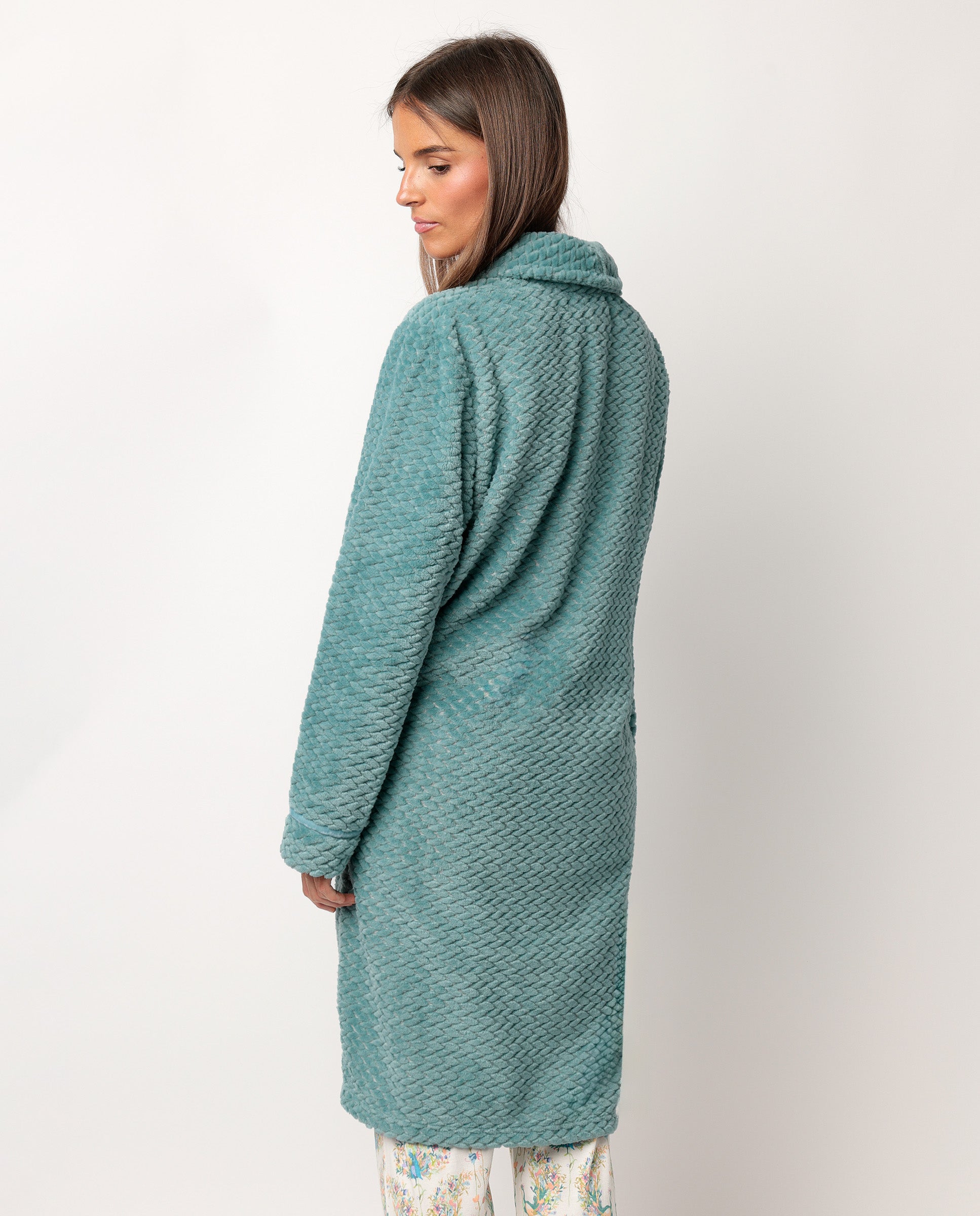 * Bata de tejido polar muy calentito, corel jacquard, de manga larga, en color aqua.