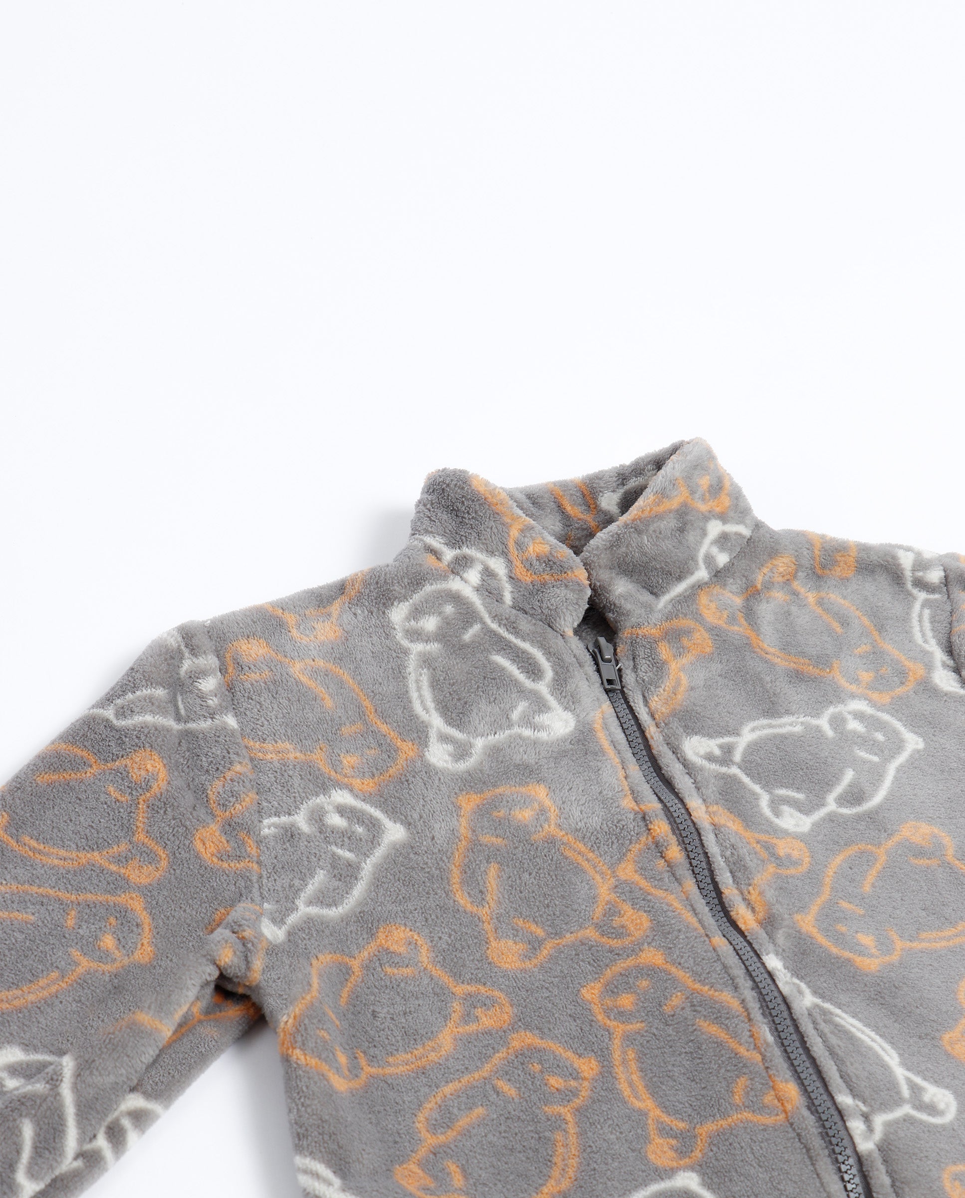 * Bata de tejido especial Corel muy calentito, de color gris, con bolsillos.