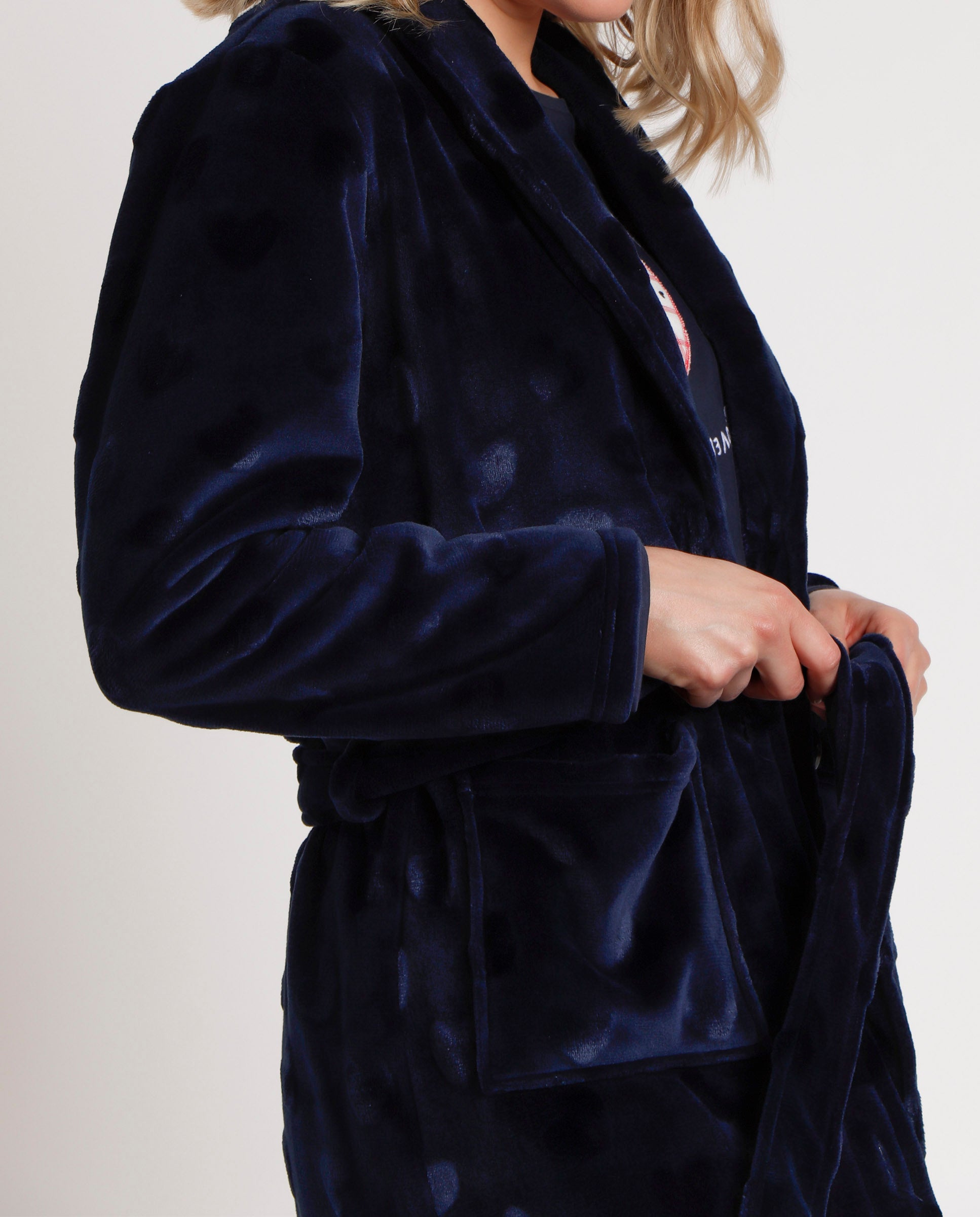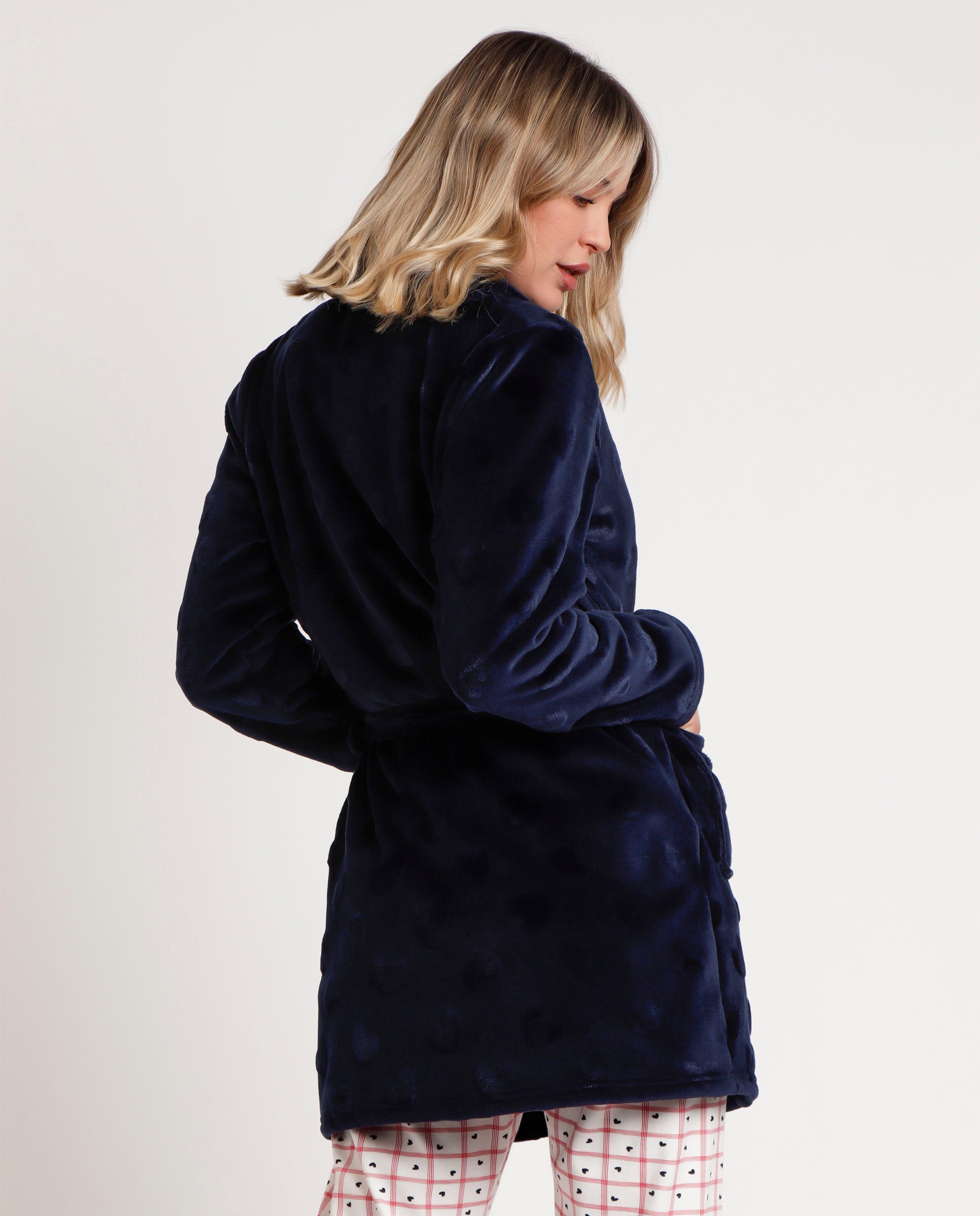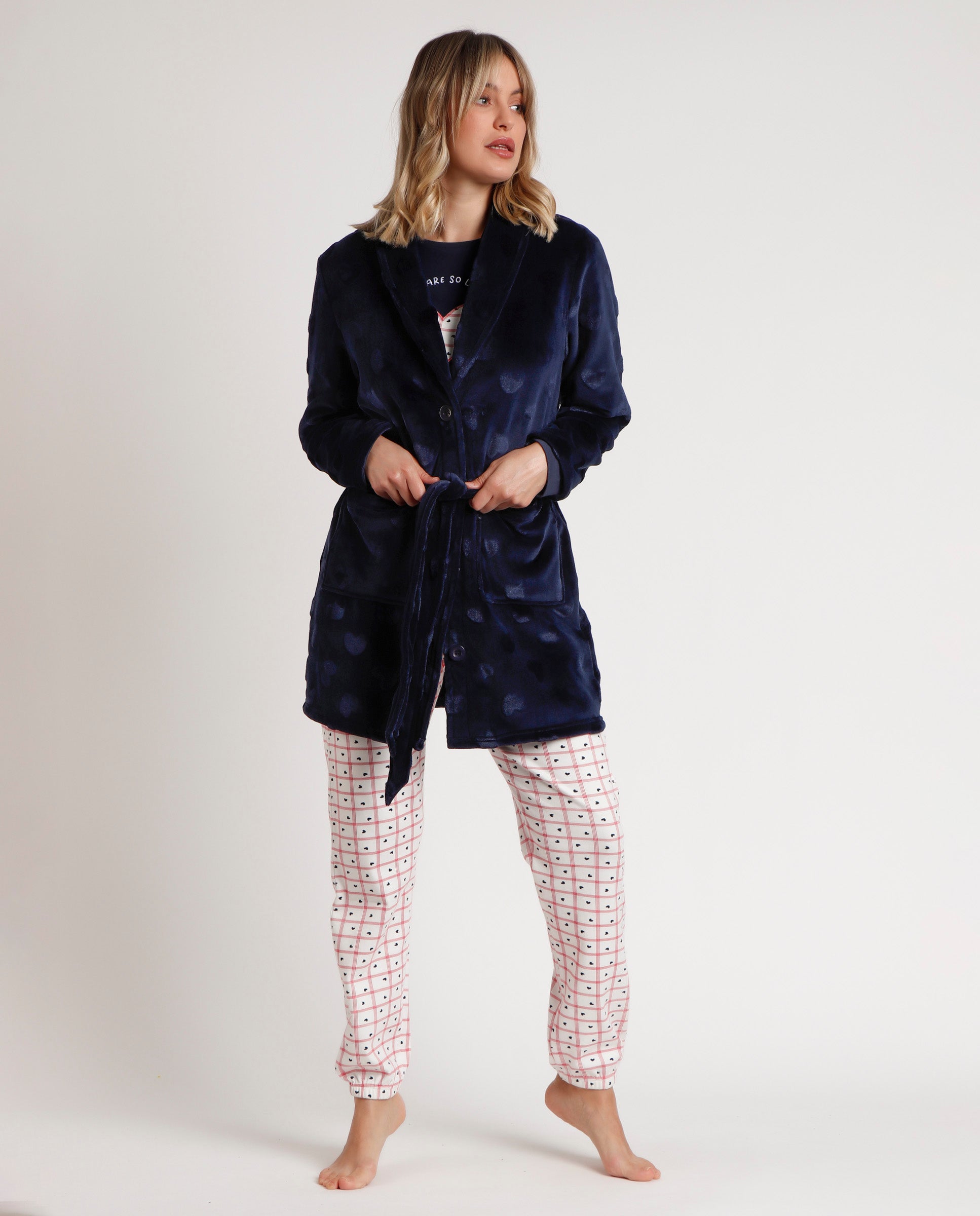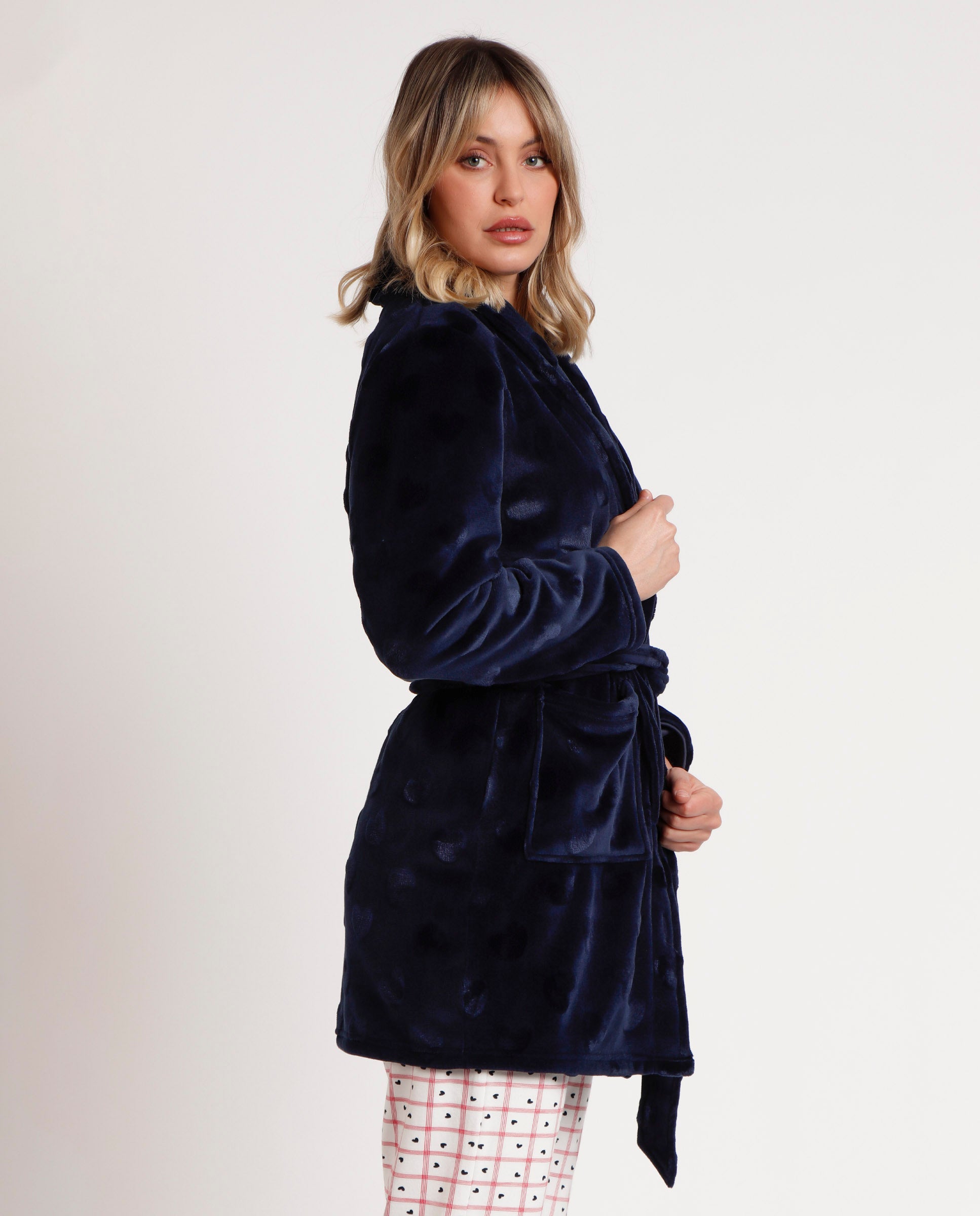 * Bata de tejido especial corel jacquard muy calentito, de color marino, con bolsillos.