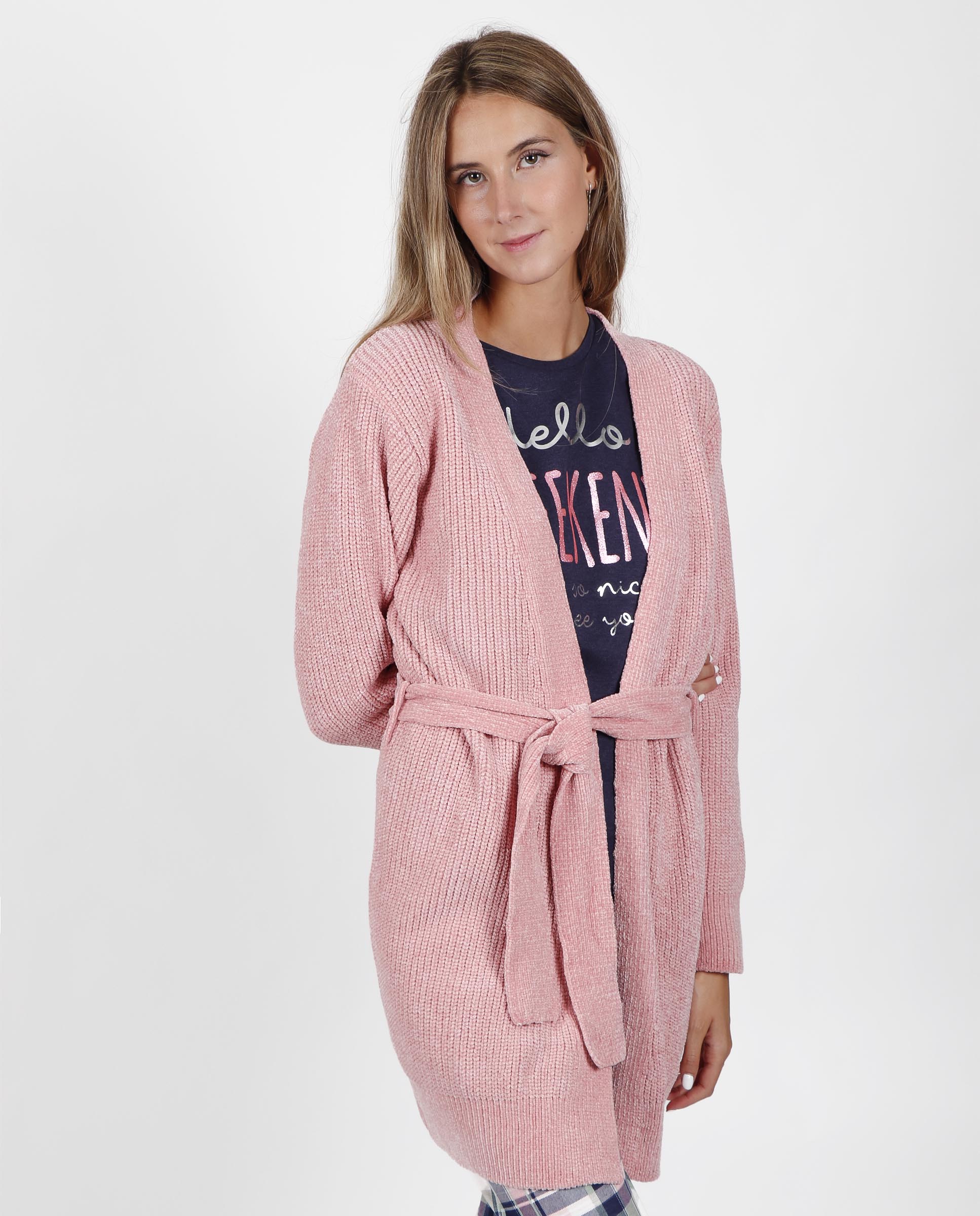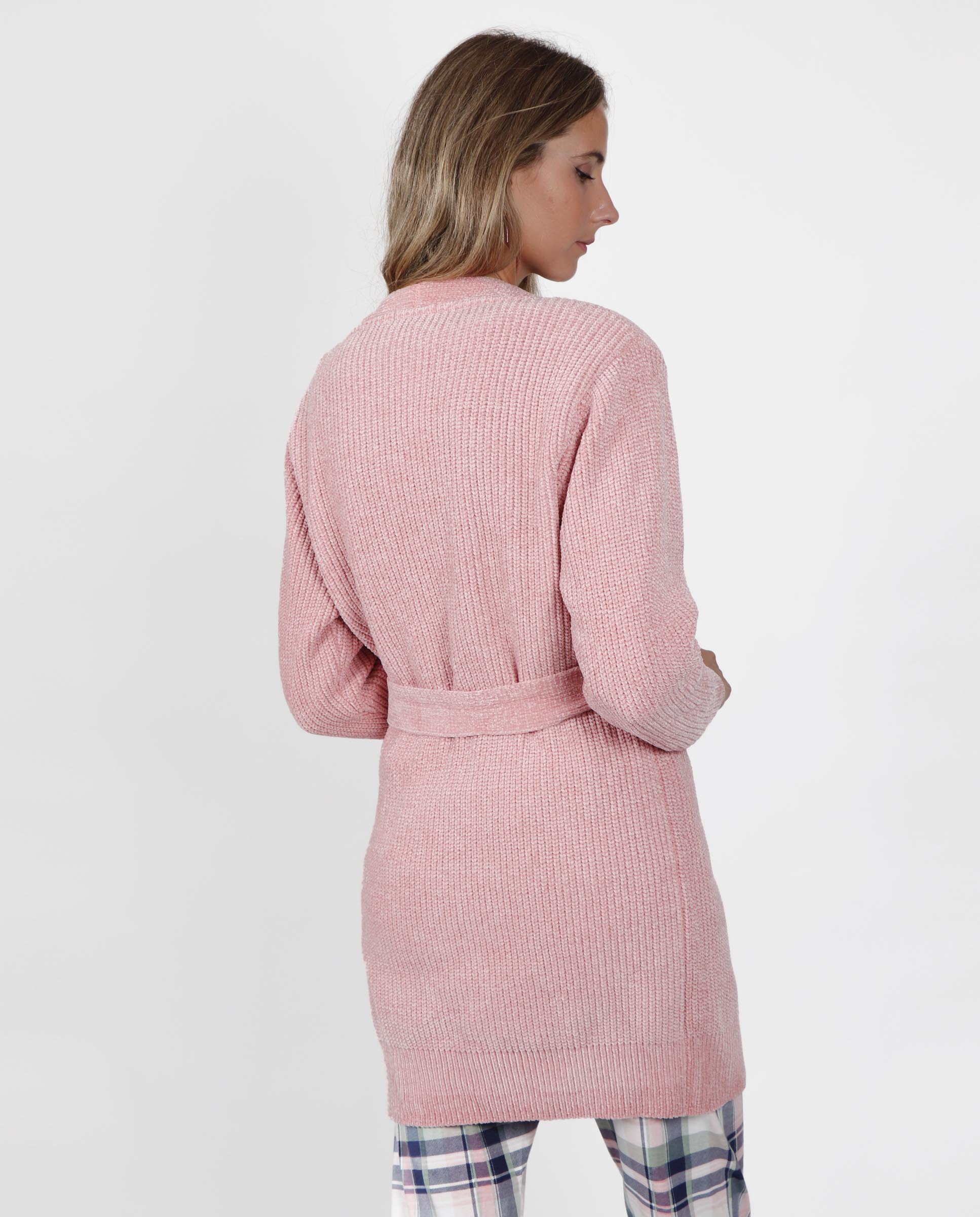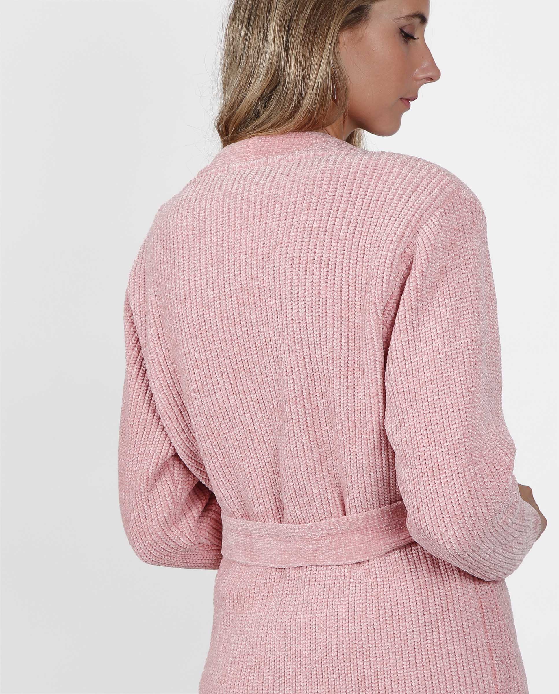 * Chaqueta de tejido especial de punto chenilla muy calentito, de color rosa
