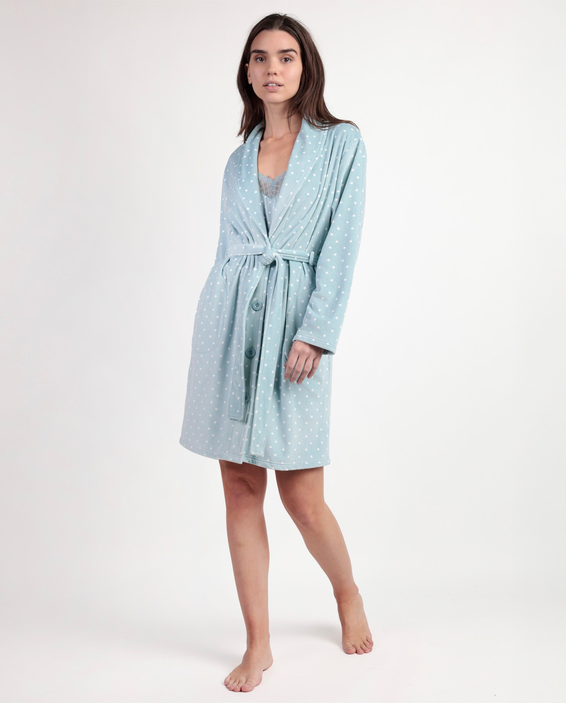 * Bata estampada de lunares, con cinturón y botones, personalizada de la marca Admas.