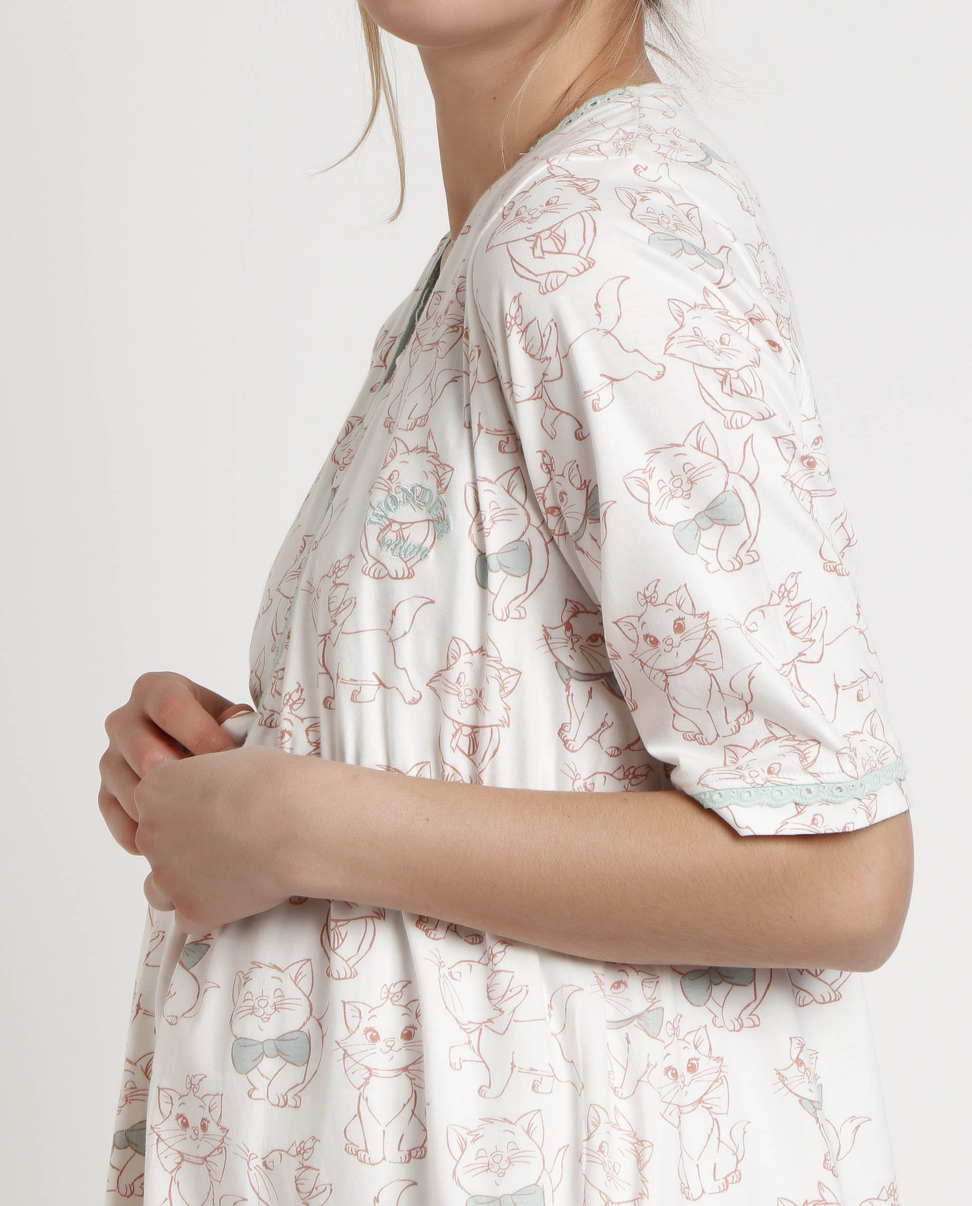 * Bata de premamá y lactancia, de manga francesa, con cinturón.