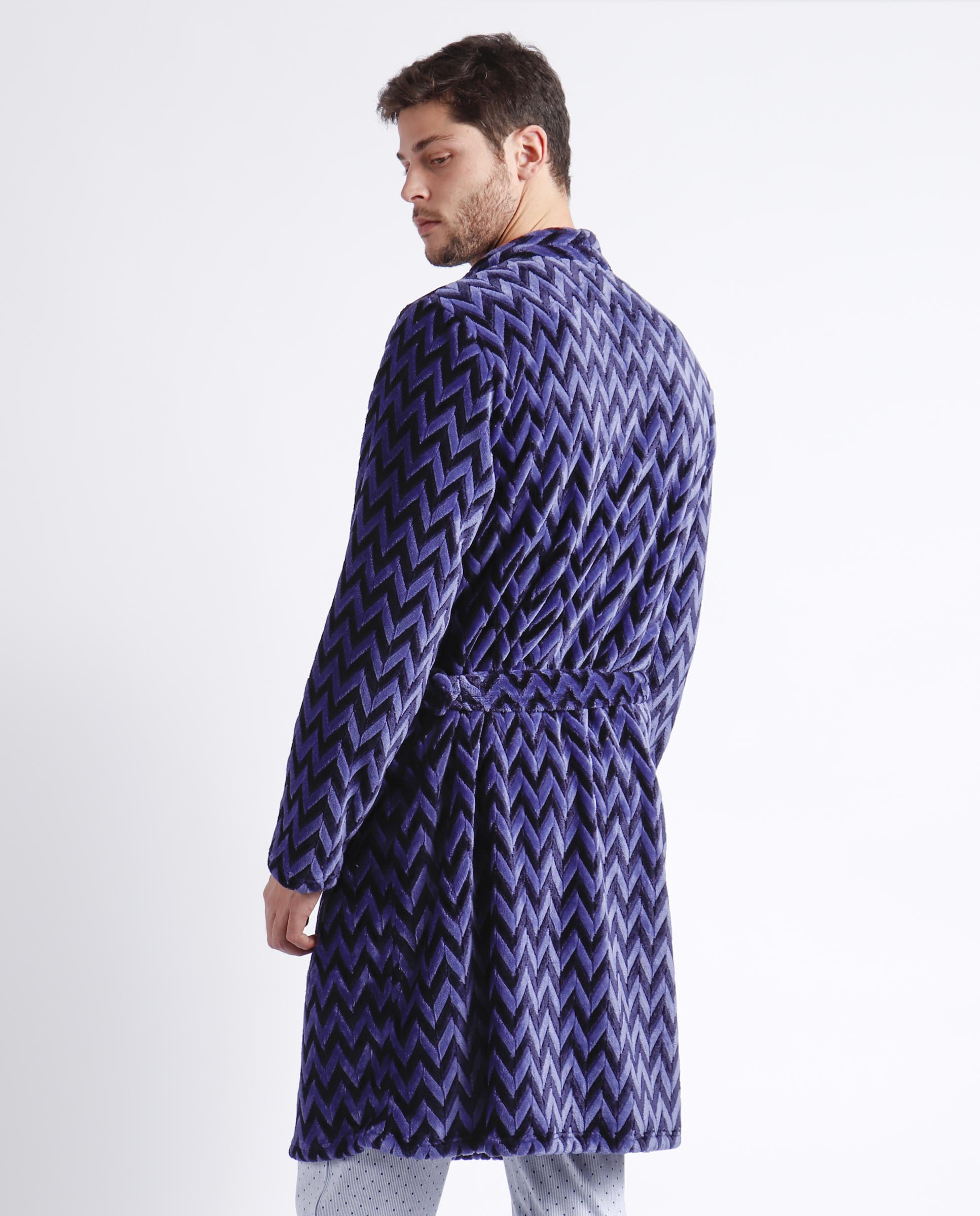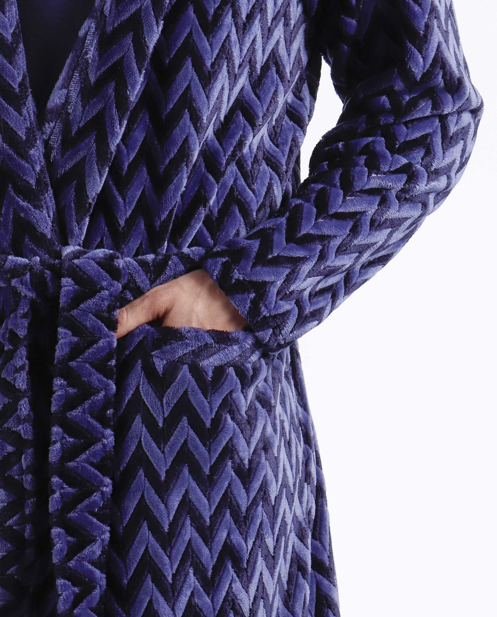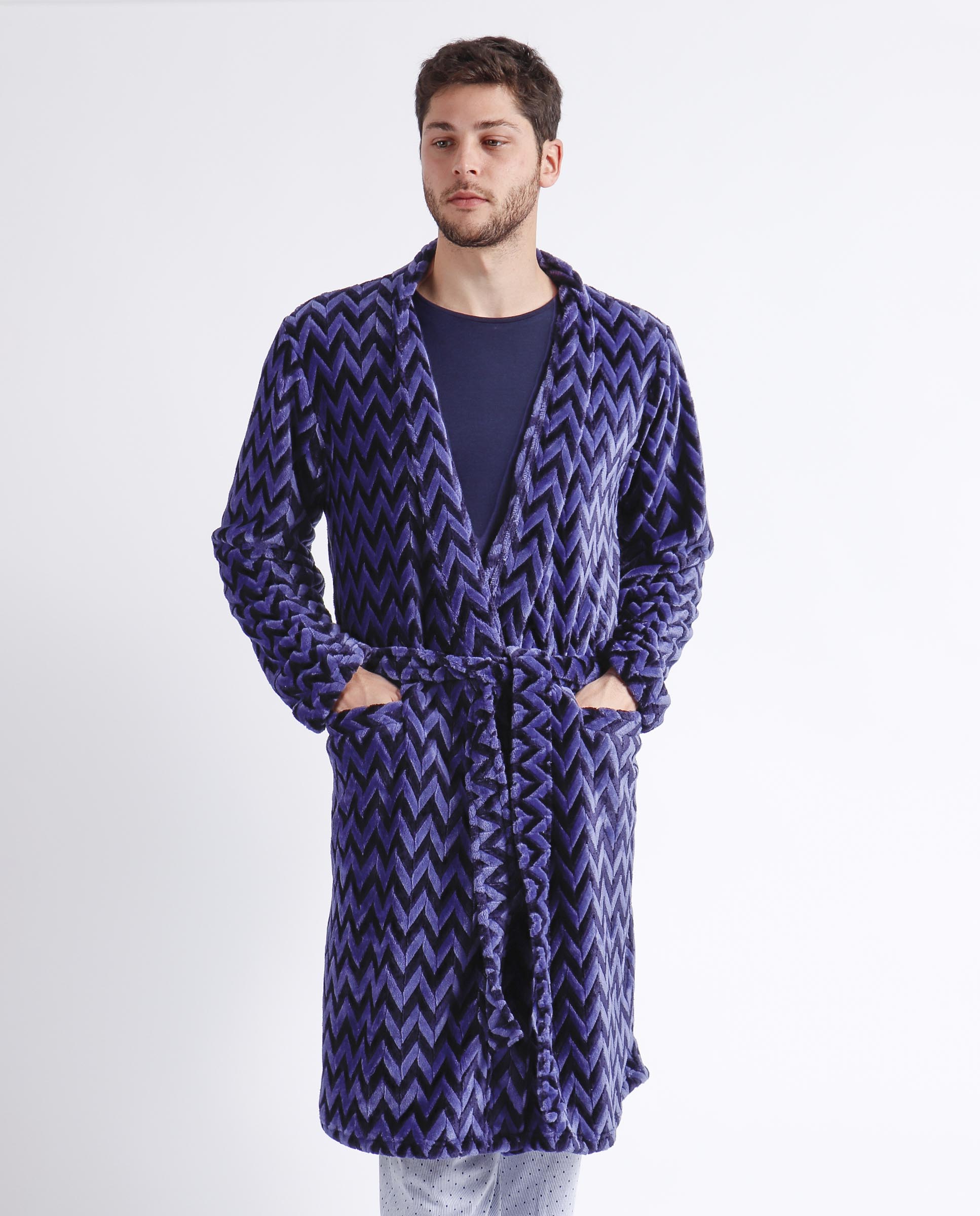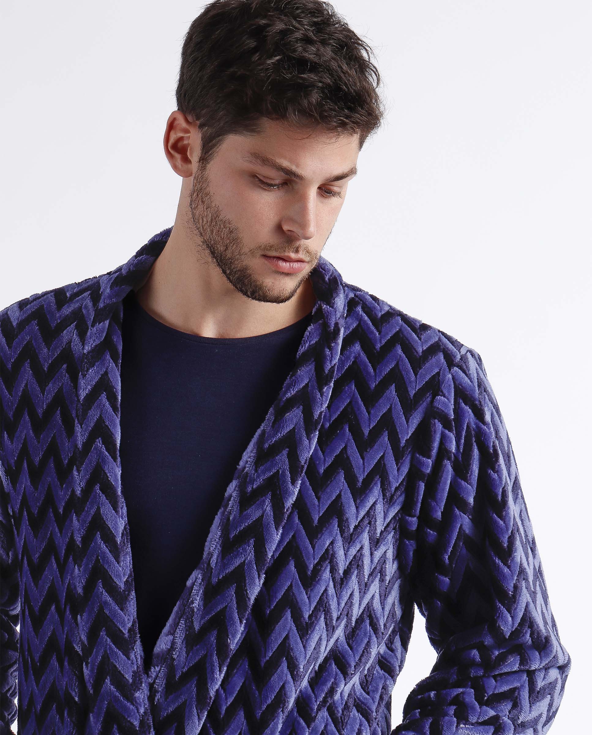 * Bata de tejido especial Jacquard Corel muy elegante, en color marino con bolsillos.