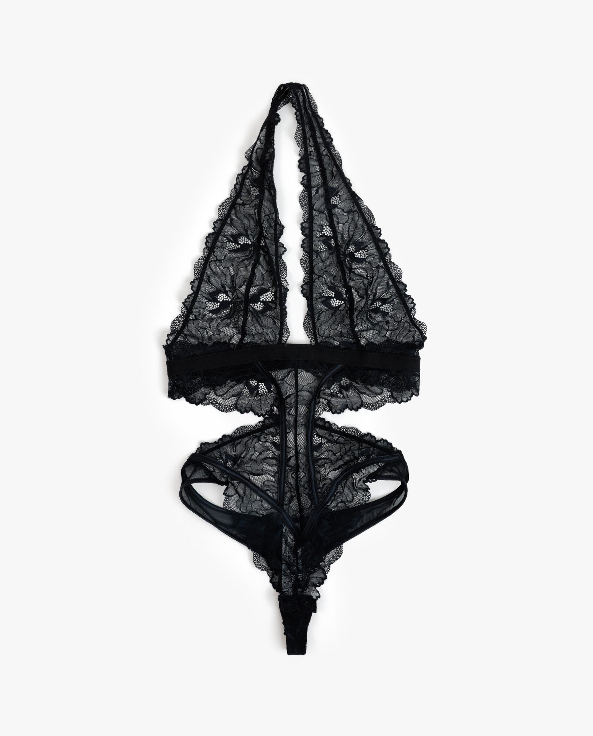 * Body de encaje para mujer, con espalda abierta, sin mangas, disponible en dos combinaciones de color: negro y rojo.