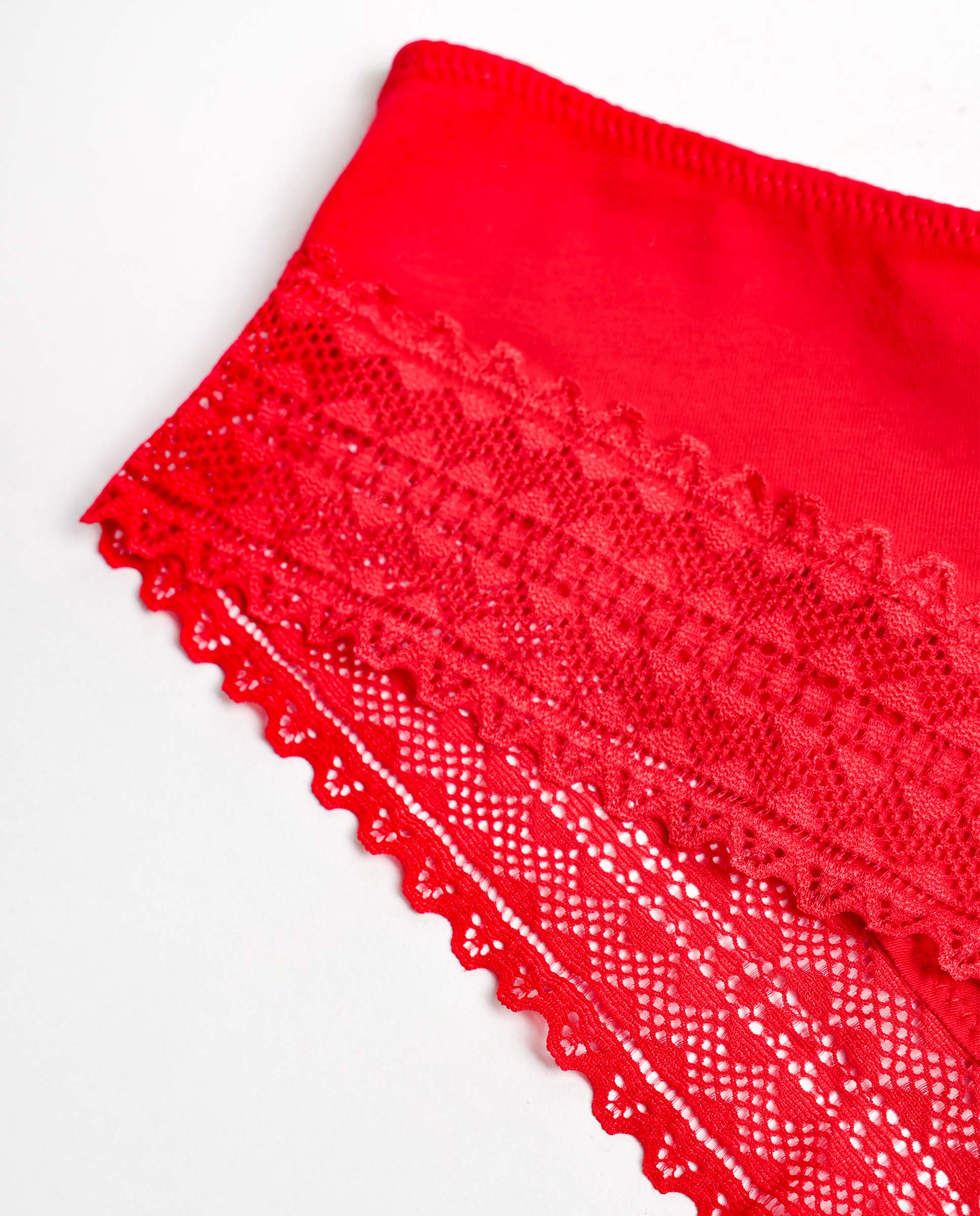 * Braga para mujer con elegantes detalles de encajes, disponible en color rojo.