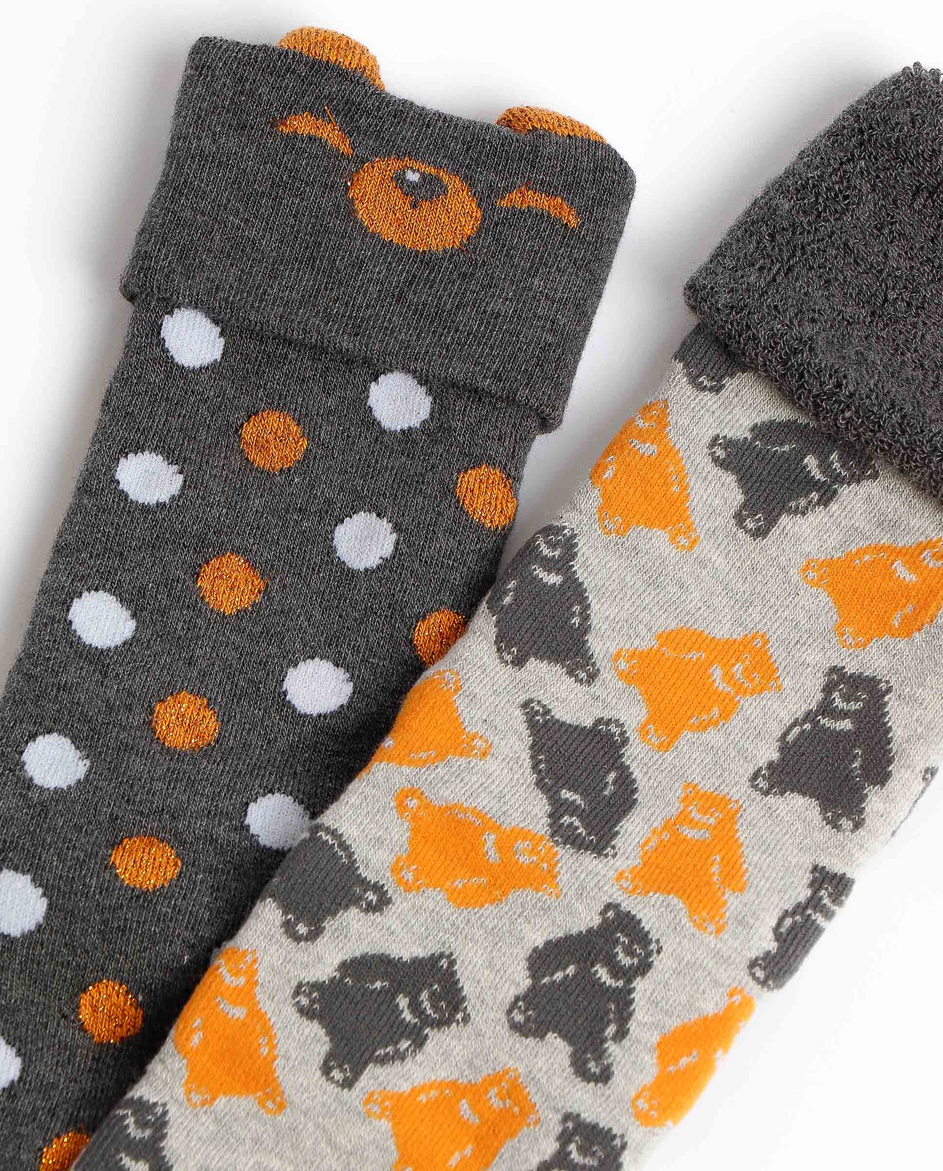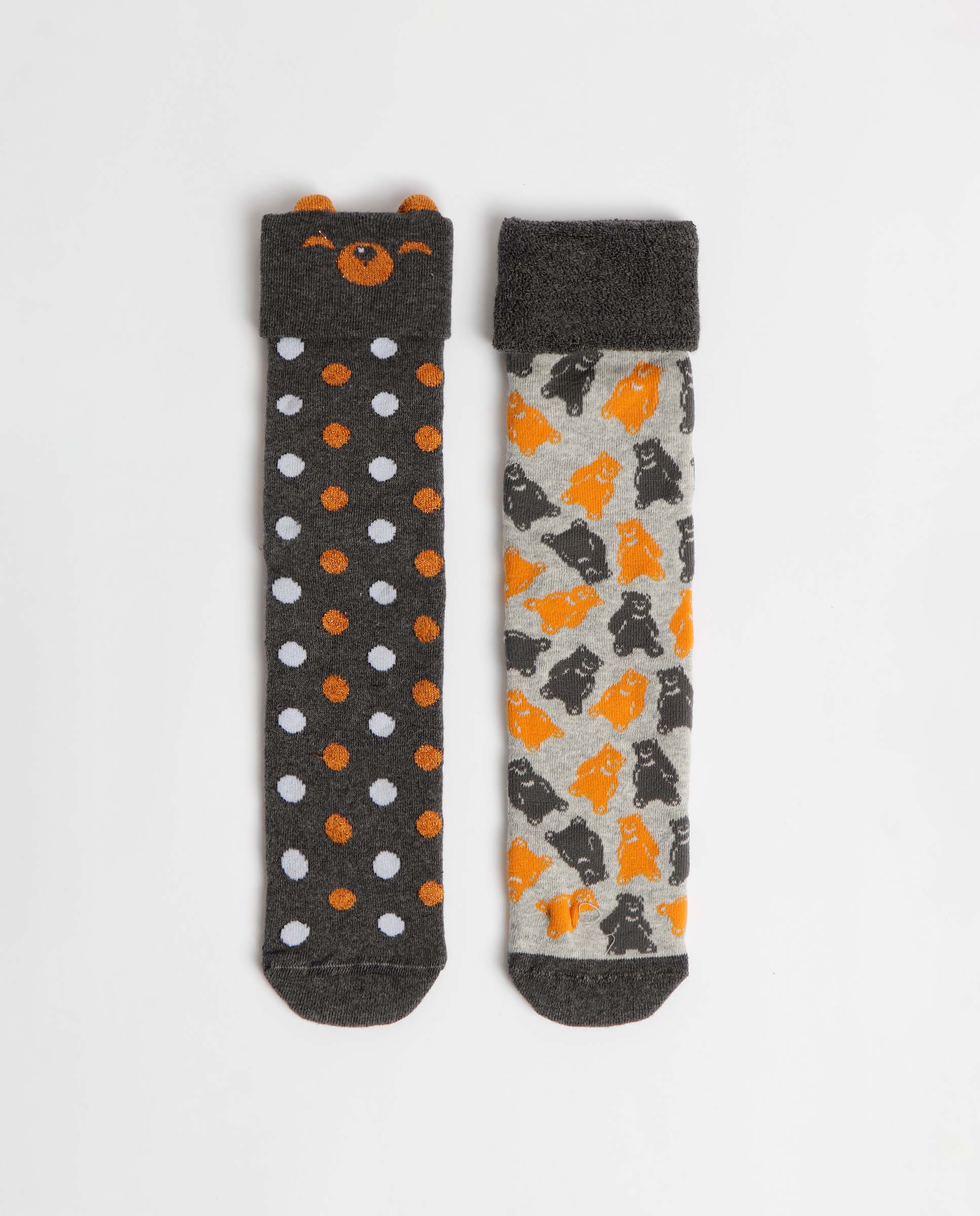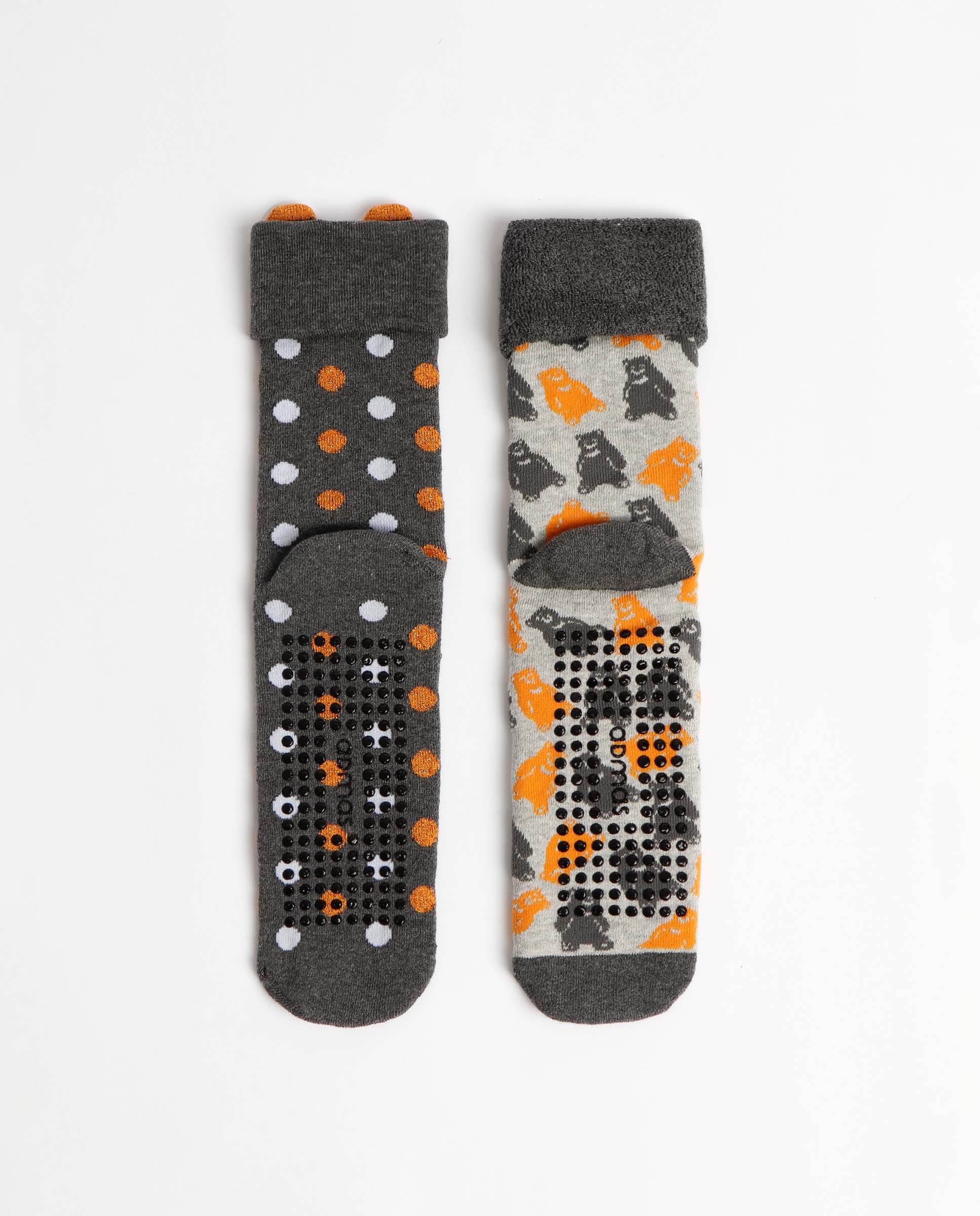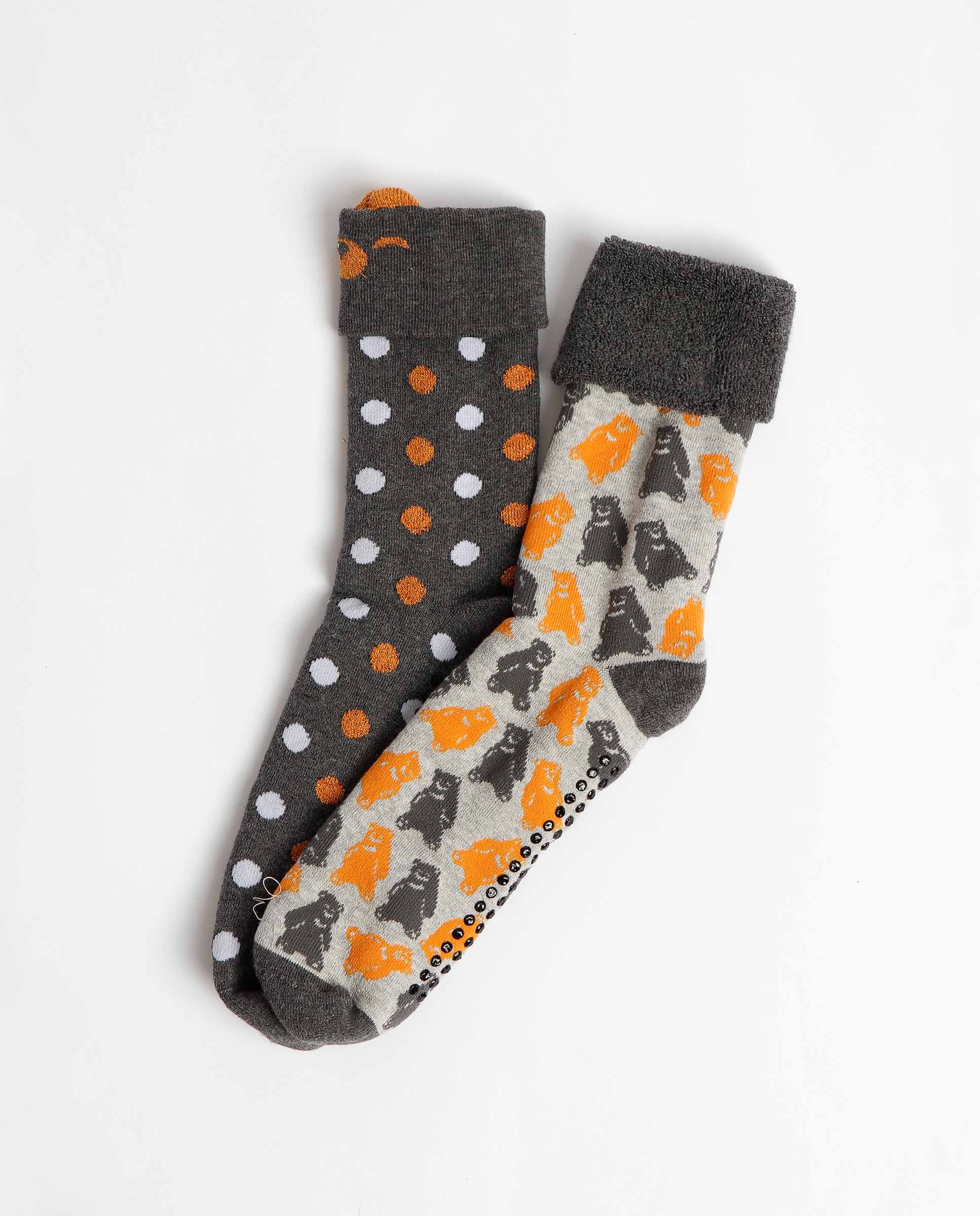 * Calcetín antideslizante de punto de algodón, en dos combinaciones de diseño tipo fantasía, en color gris jaspe.