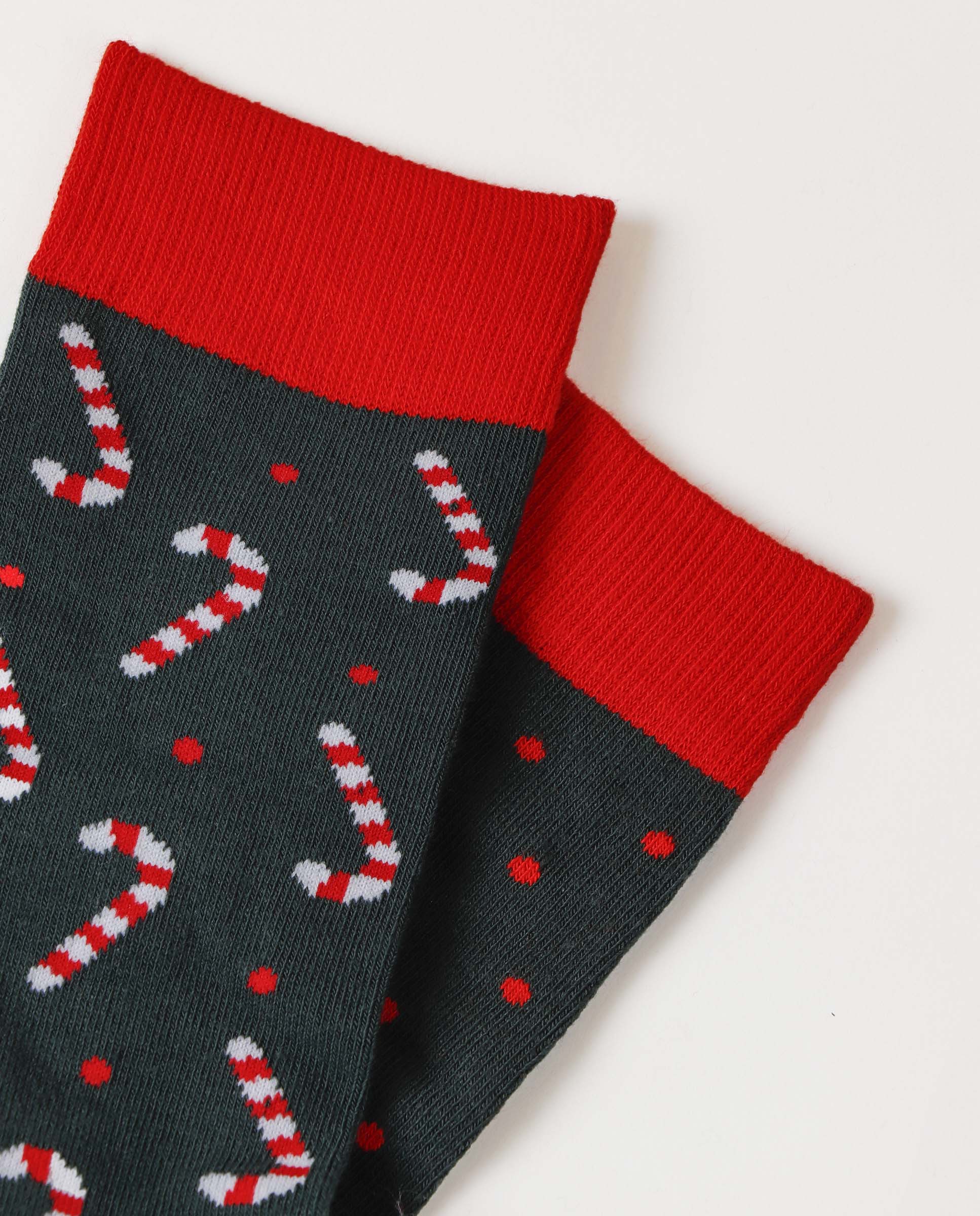 * Calcetín de punto de algodón, en dos combinaciones de estampado: lunares y bastones.