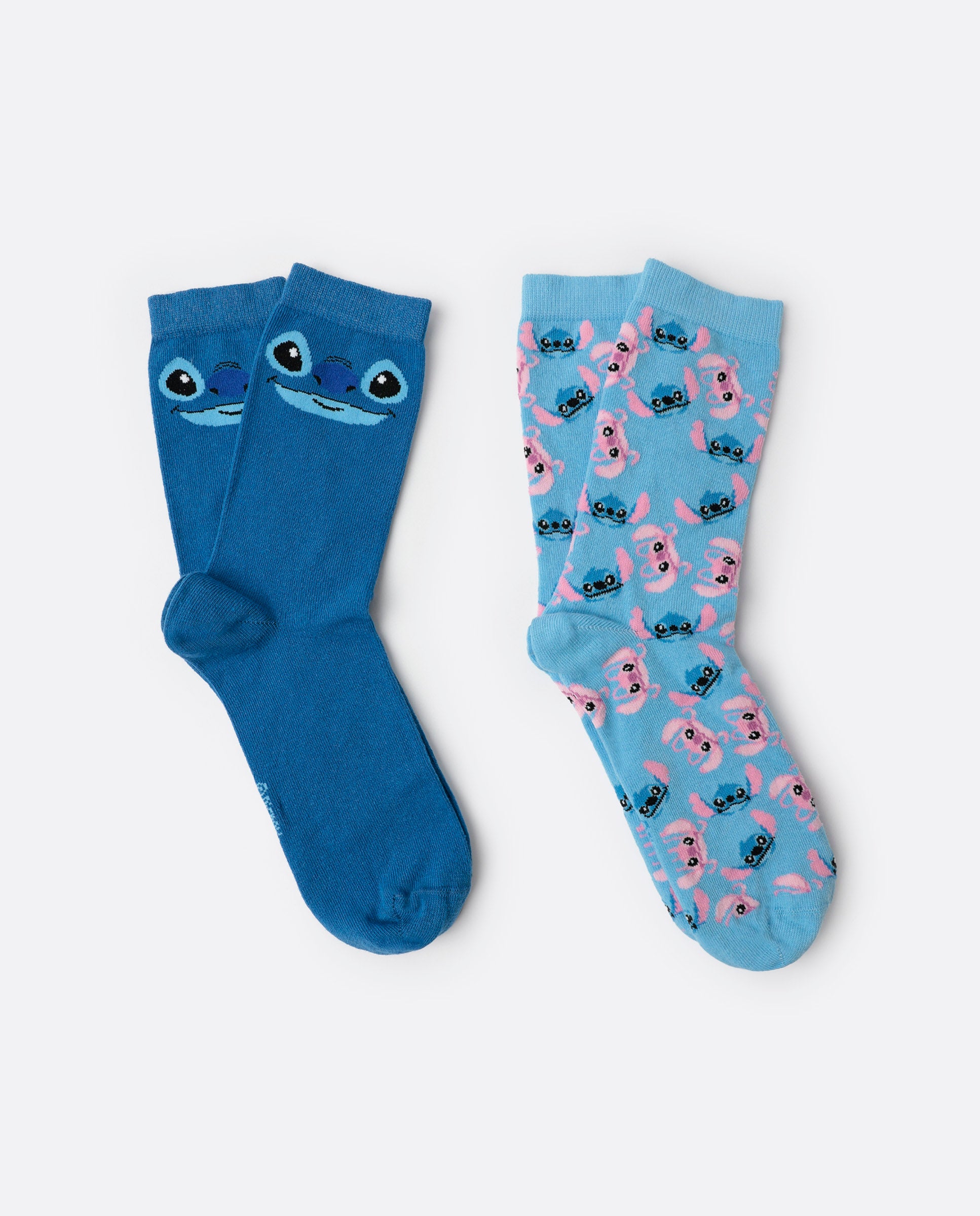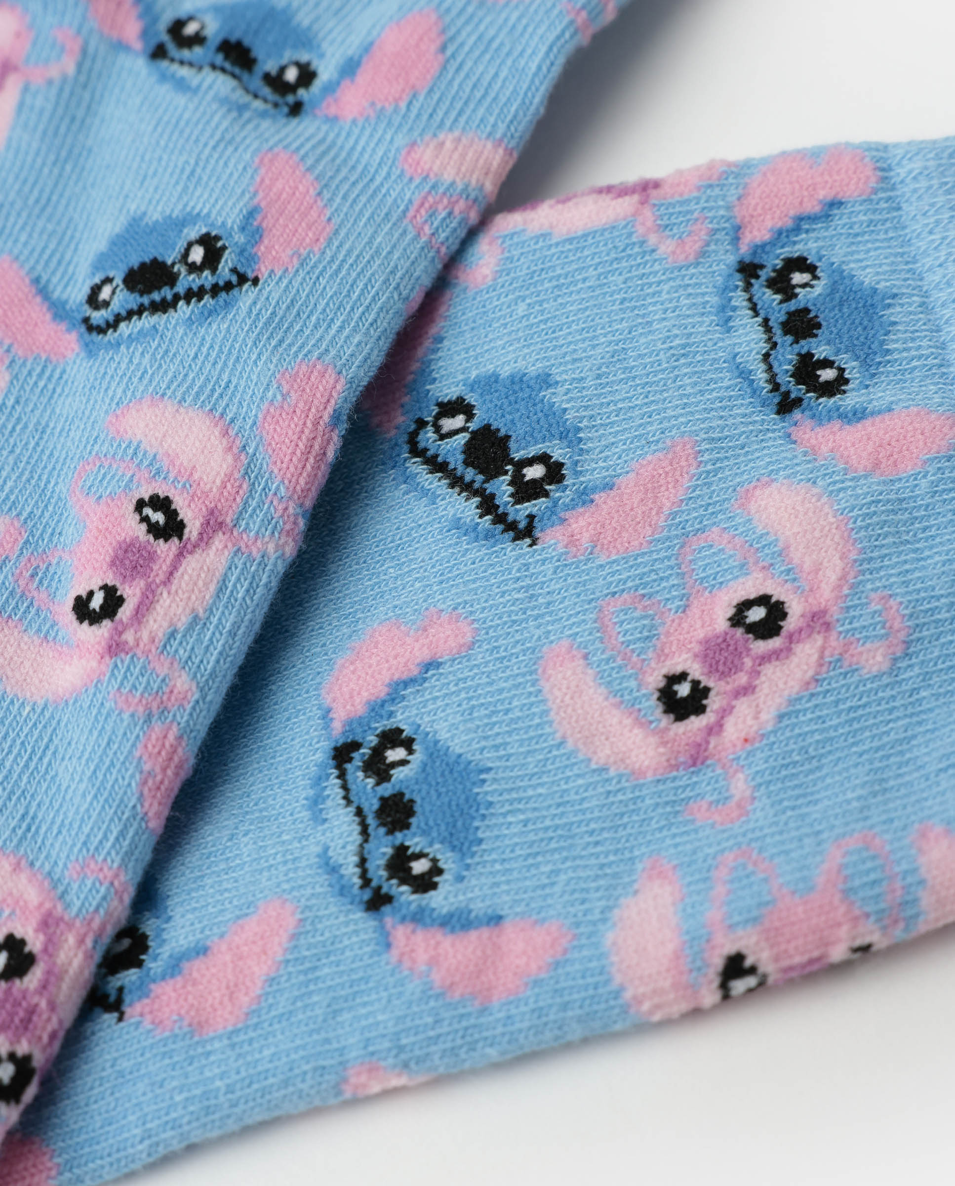 DISNEY Calcetín de Caña Normal Stitch & Angel para Mujer, (Caja de 6 pares)