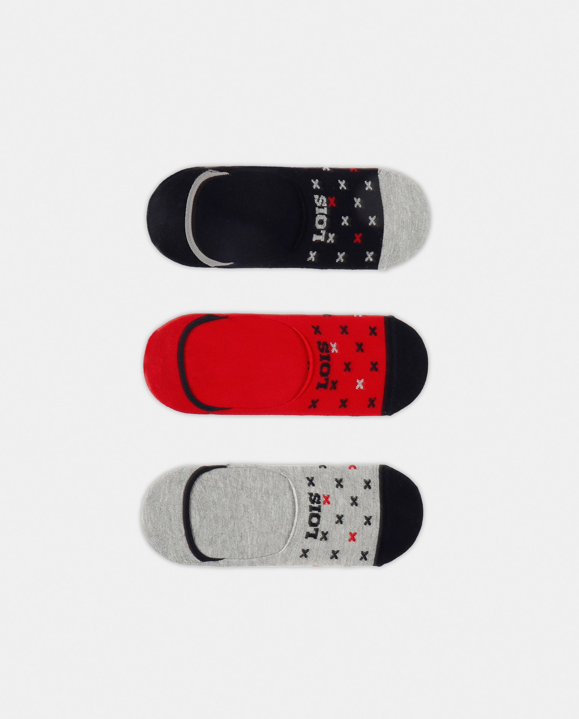 * Calcetín invisible de punto de algodón, en tres combinaciones de color: marino, gris jaspe y rojo