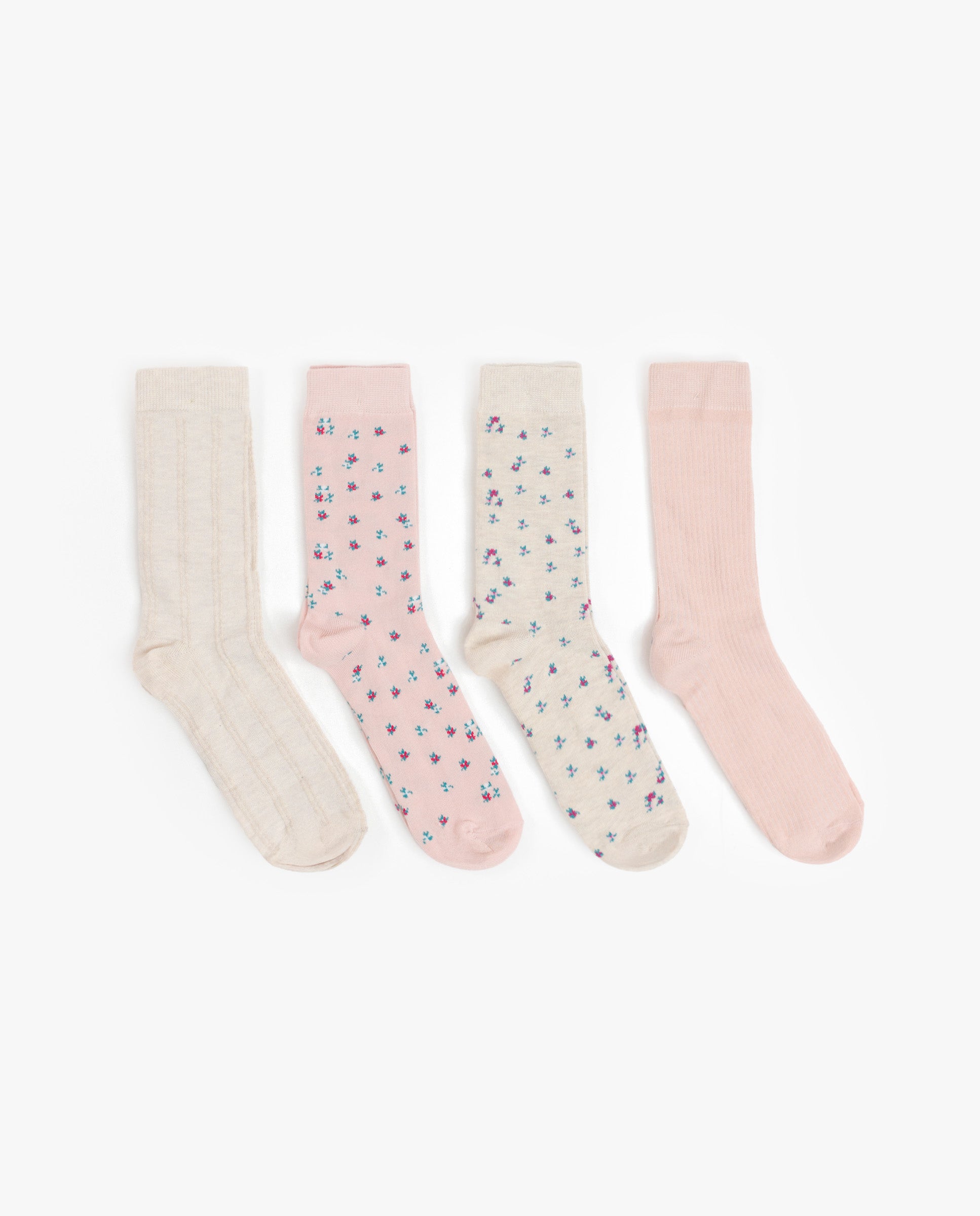 * Calcetín mediano de punto de algodón, en dos combinaciones de color: rosa y gris jaspe.