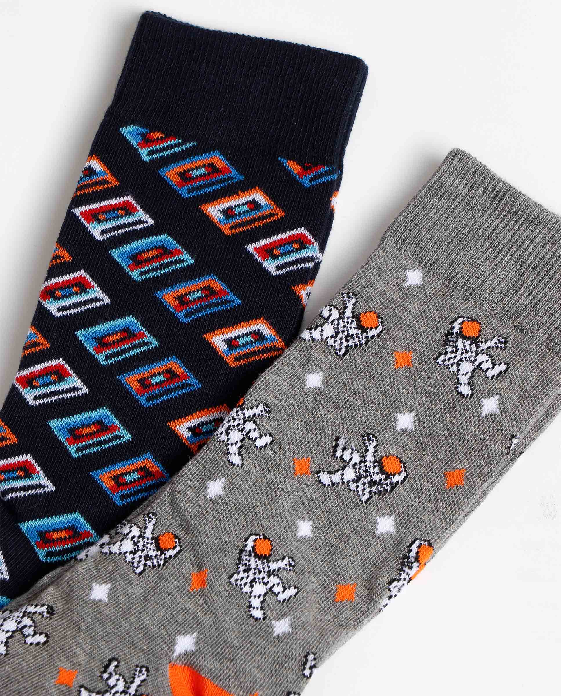 * Calcetín mediano de punto de algodón, en dos combinaciones de color: gris jaspe y marino.