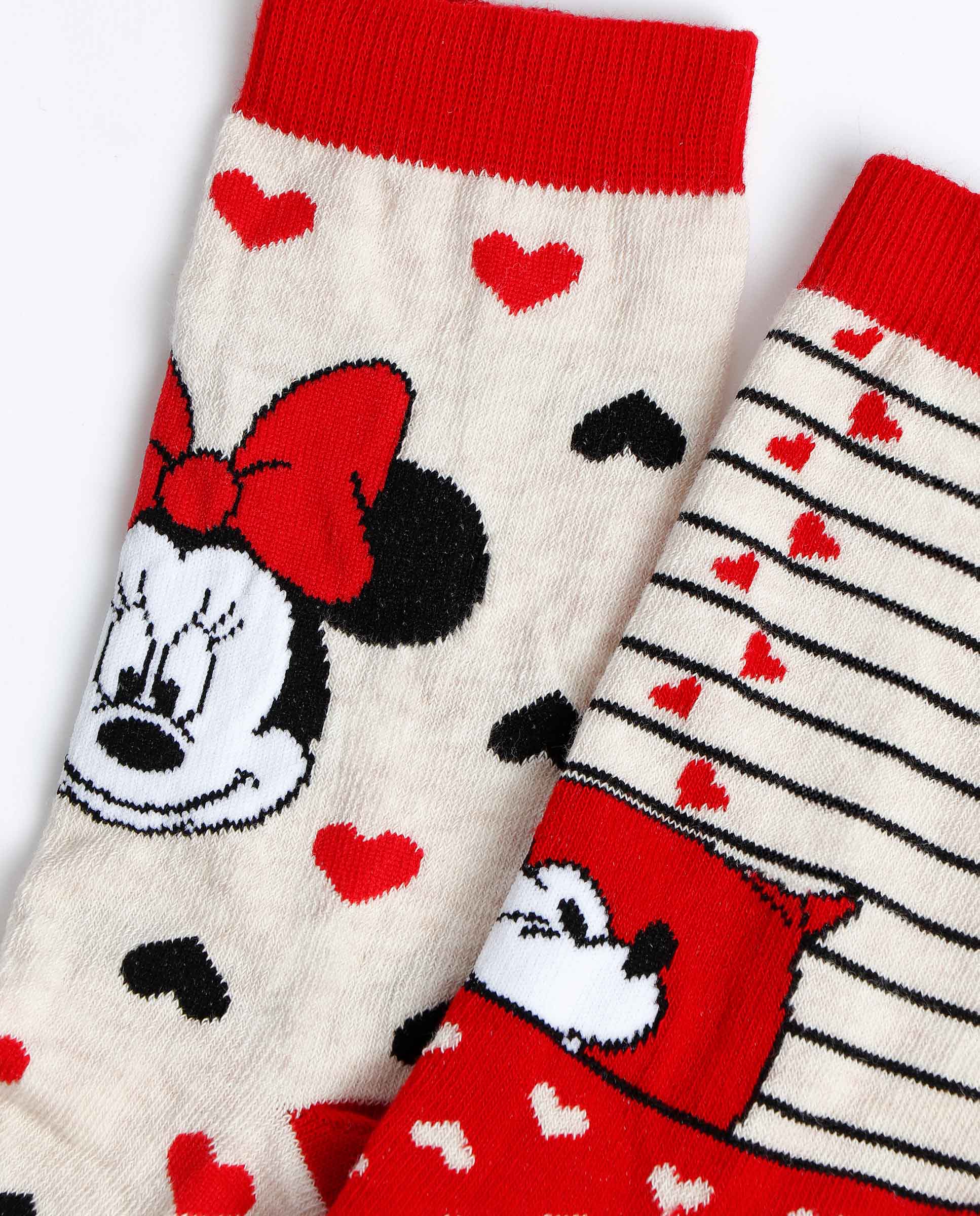 * Calcetín mediano de punto de algodón, en dos combinaciones de diseño tipo fantesía, de color rojo.