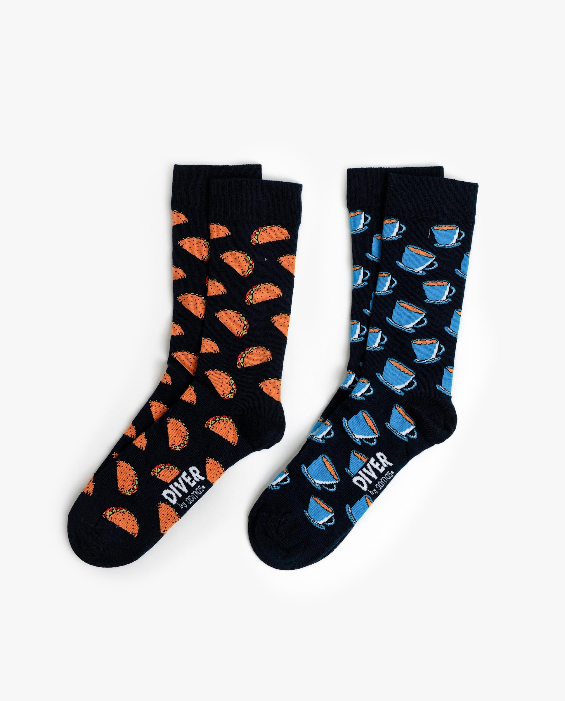 DIVER Calcetín Mediano Diver Taco and Coffee para Hombre, (Caja de 6 pares)