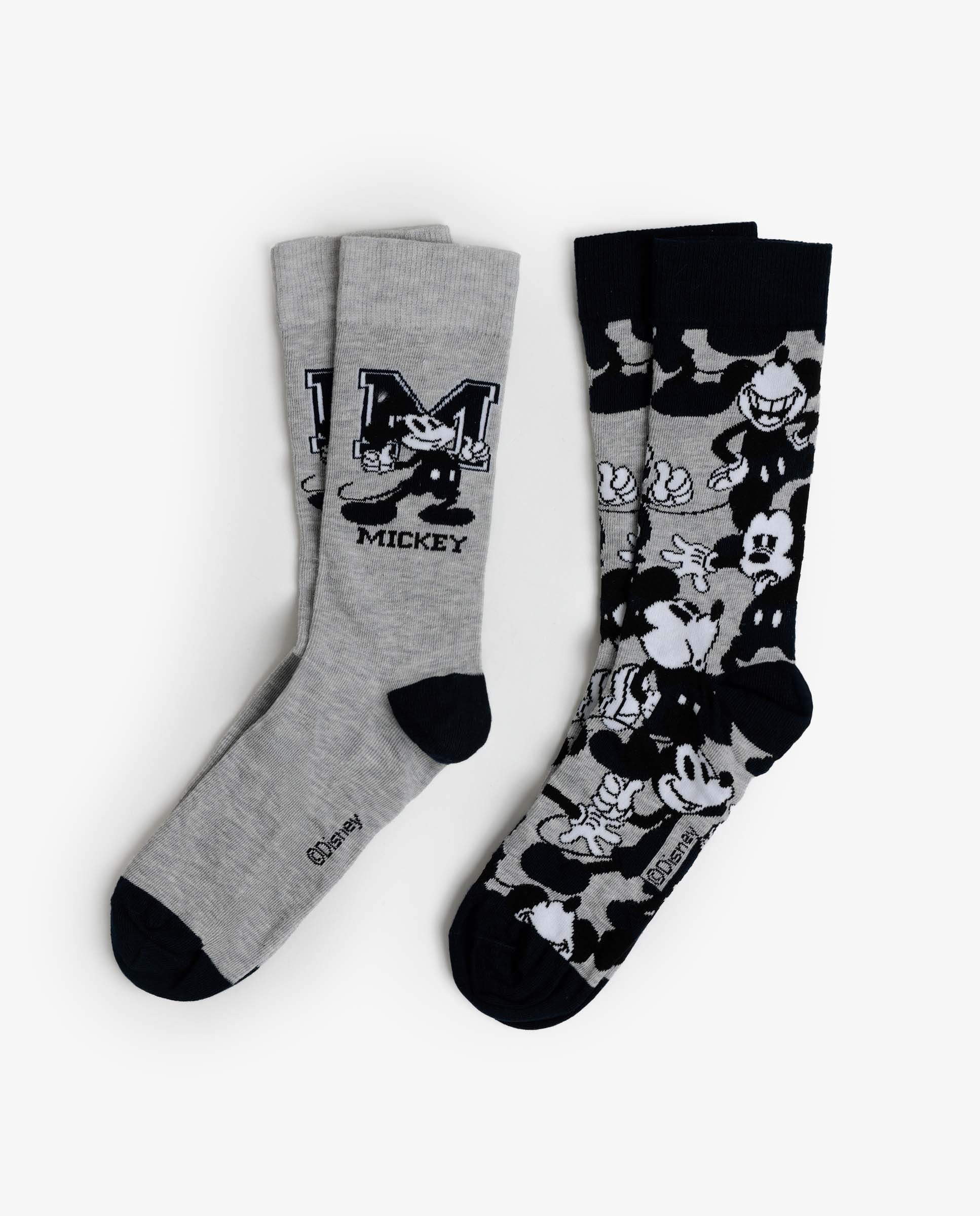 * Calcetín mediano de punto de algodón, de color gris jaspe, con dibujo de Mickey, disponible en dos combinaciones de diseño.