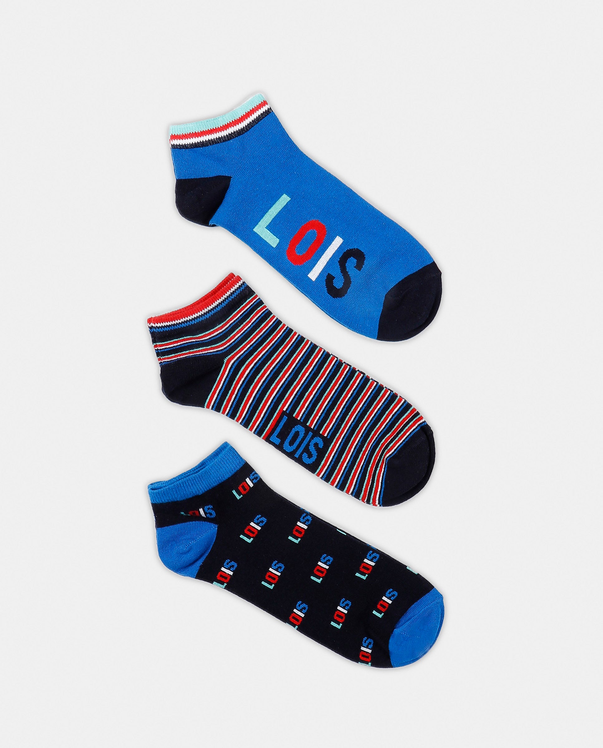 * Calcetín invisible de punto de algodón ligero y fresco, en tres combinaciones de color: marino, azul y rayas