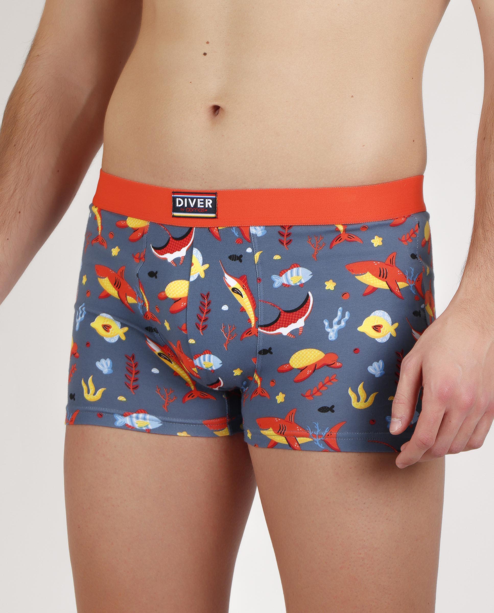 * Calzoncillo/Bóxer para hombre de algodón elástico estampado, en dos combinaciones de color: marino y gris jaspe.