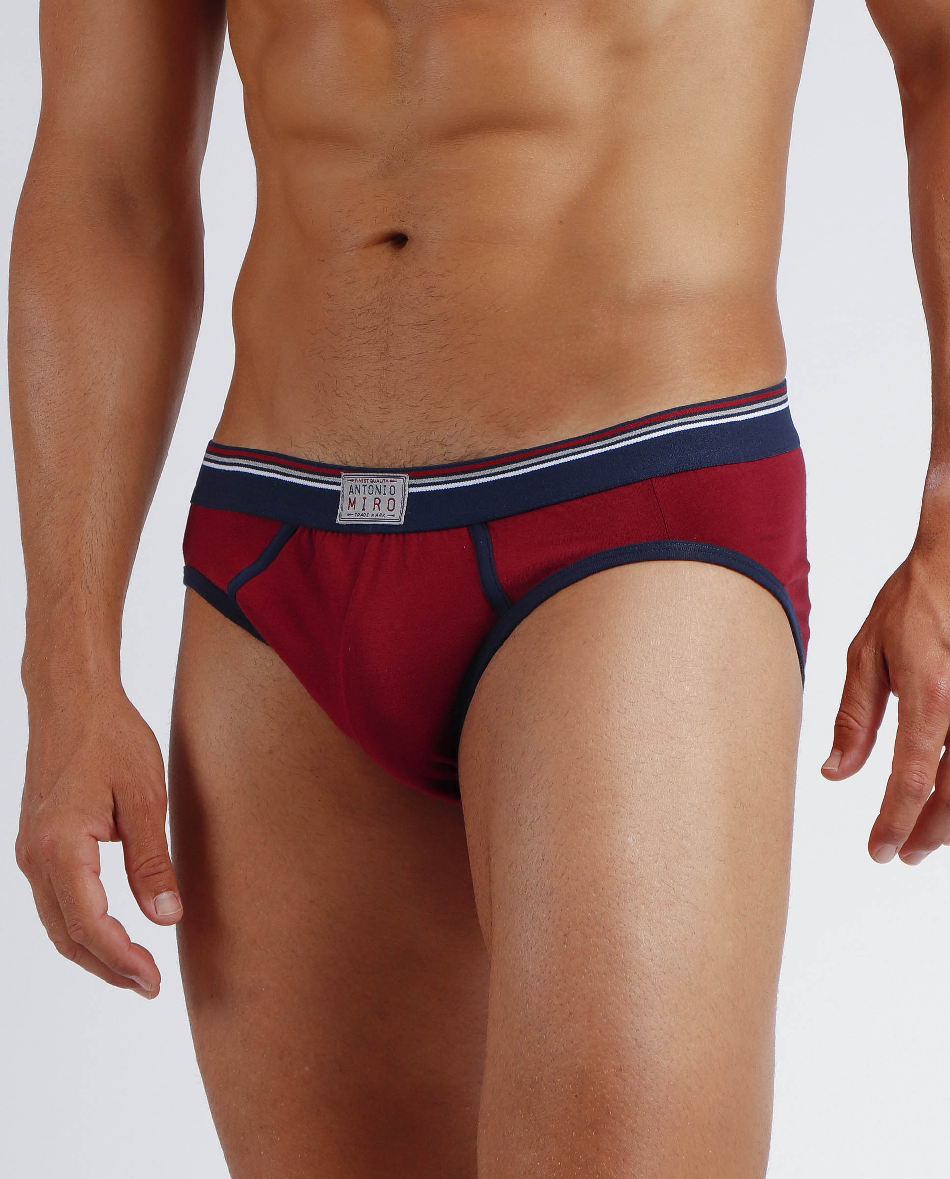 * Calzoncillo/Slip para hombre de algodón elástico estampado, en dos combinaciones de color: marino y burdeos.