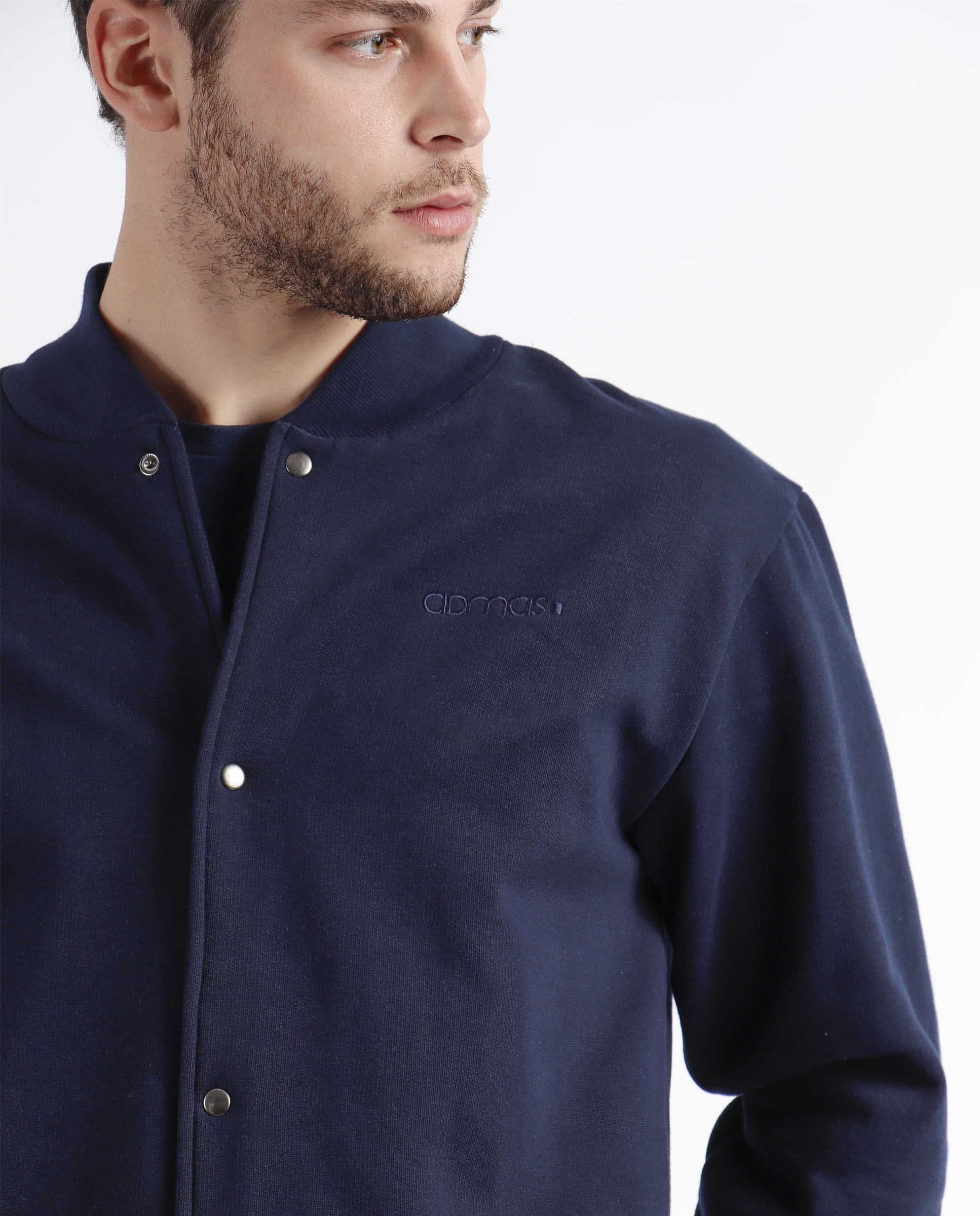 * Chaqueta de tejido felpa (tejido tipo chándal), en color marino, con bolsillos.