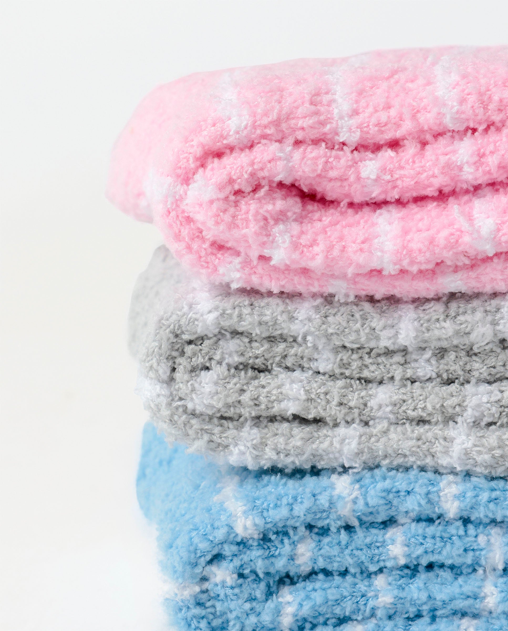 * Calcetín de largo medio, de punto de pelo, en tres combinaciones de color: rosa, azul y gris.
