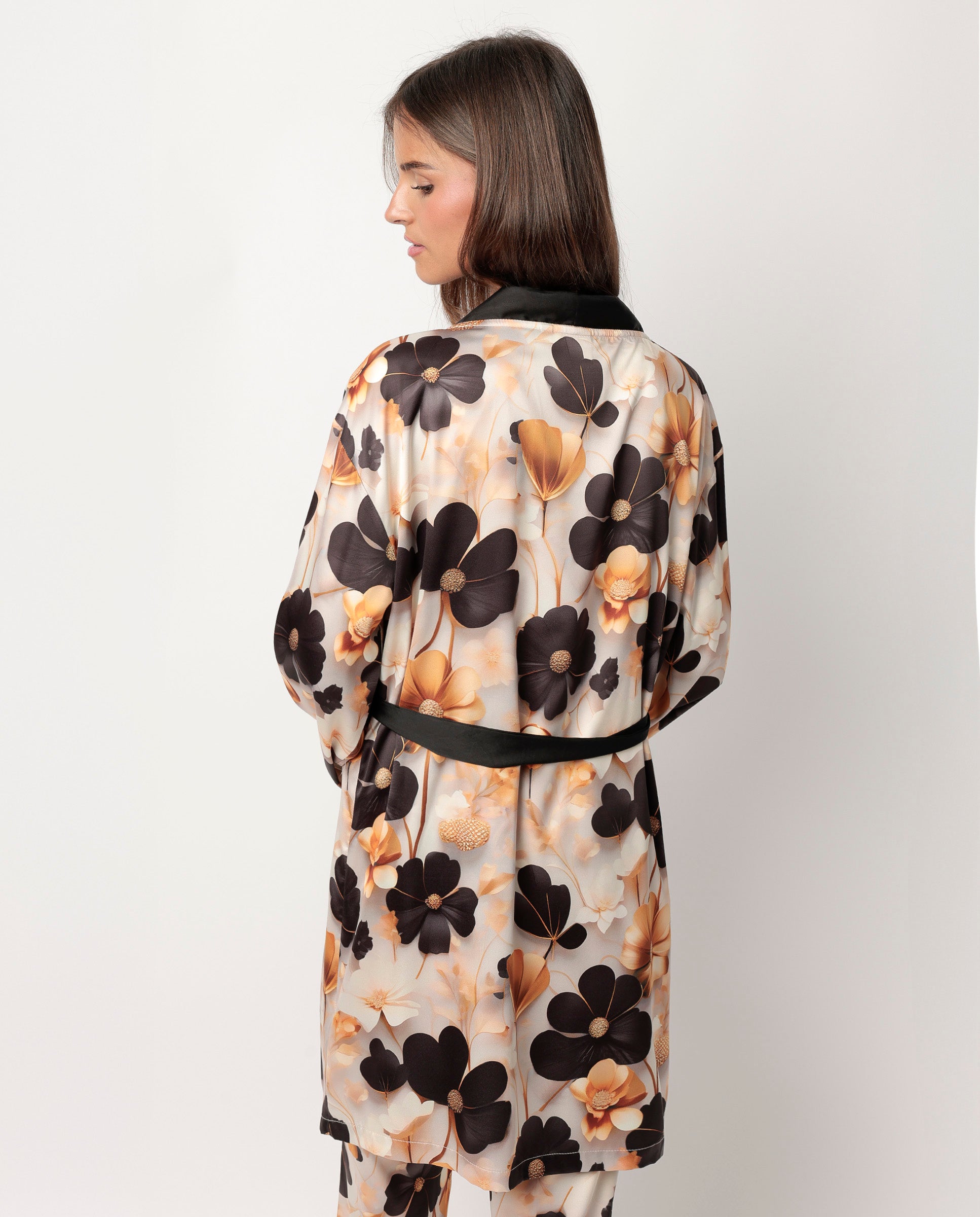 LUXURY Bata Manga Larga Satinada Luxury Flowers para Mujer