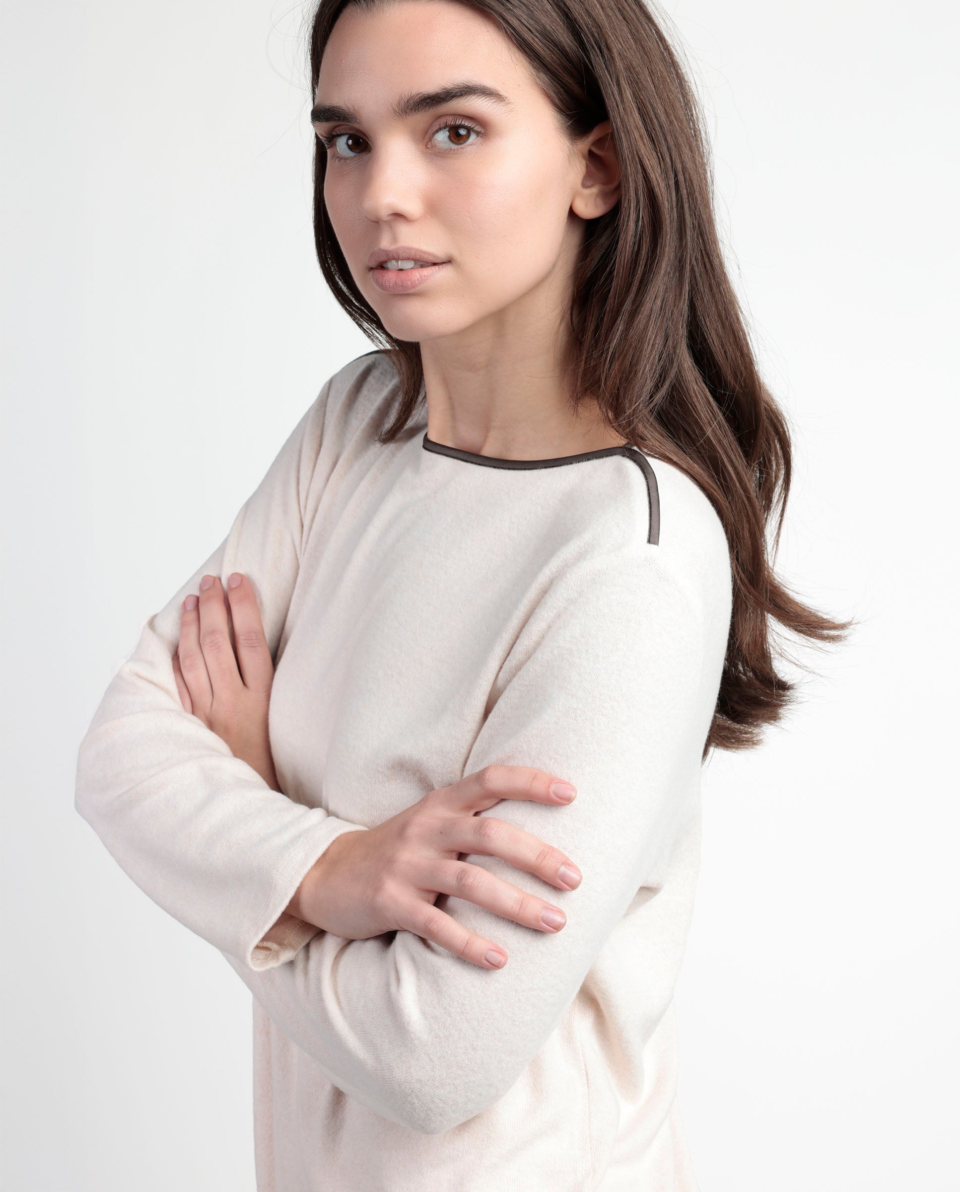 * Camiseta de punto interlock, en color beige, con detalle raso, de diseño personalizado de la marca Admas Classic.