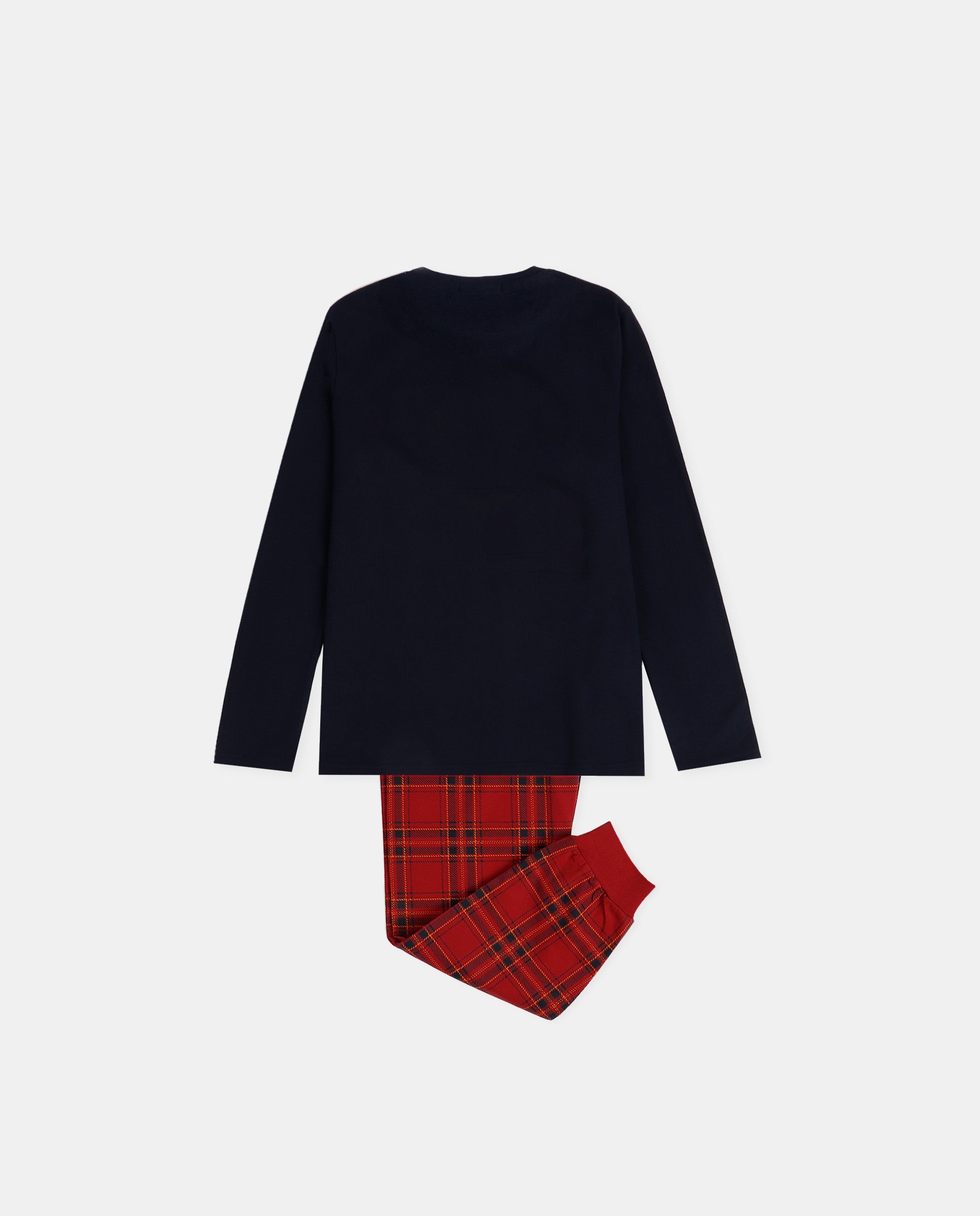* Pijama de punto de algodón, de manga larga, cuello redondo y pantalón largo.