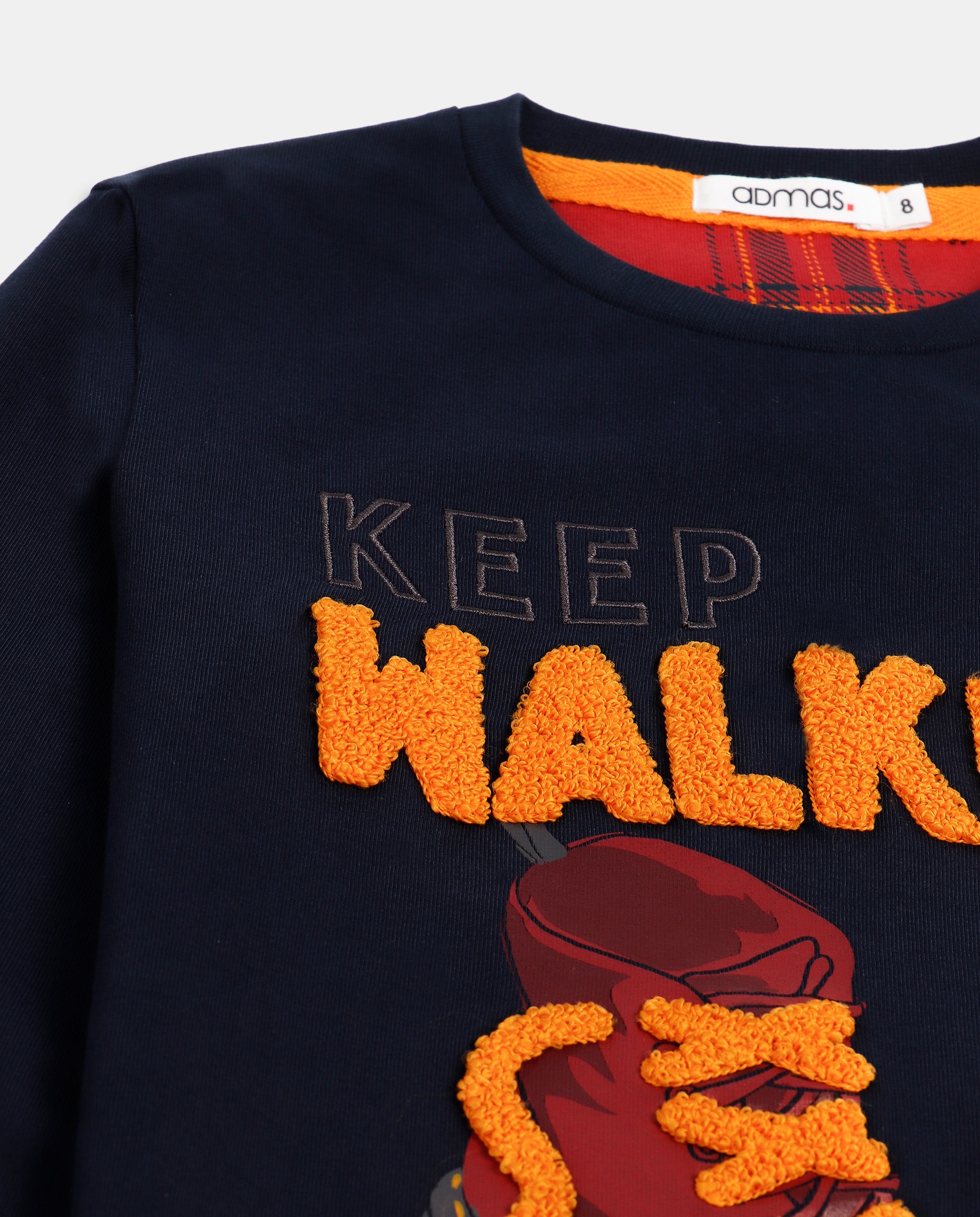 * Camiseta de punto liso, de color marino, con dibujo estampado con detalles bordados en rizo, personalizada de la marca Admas.