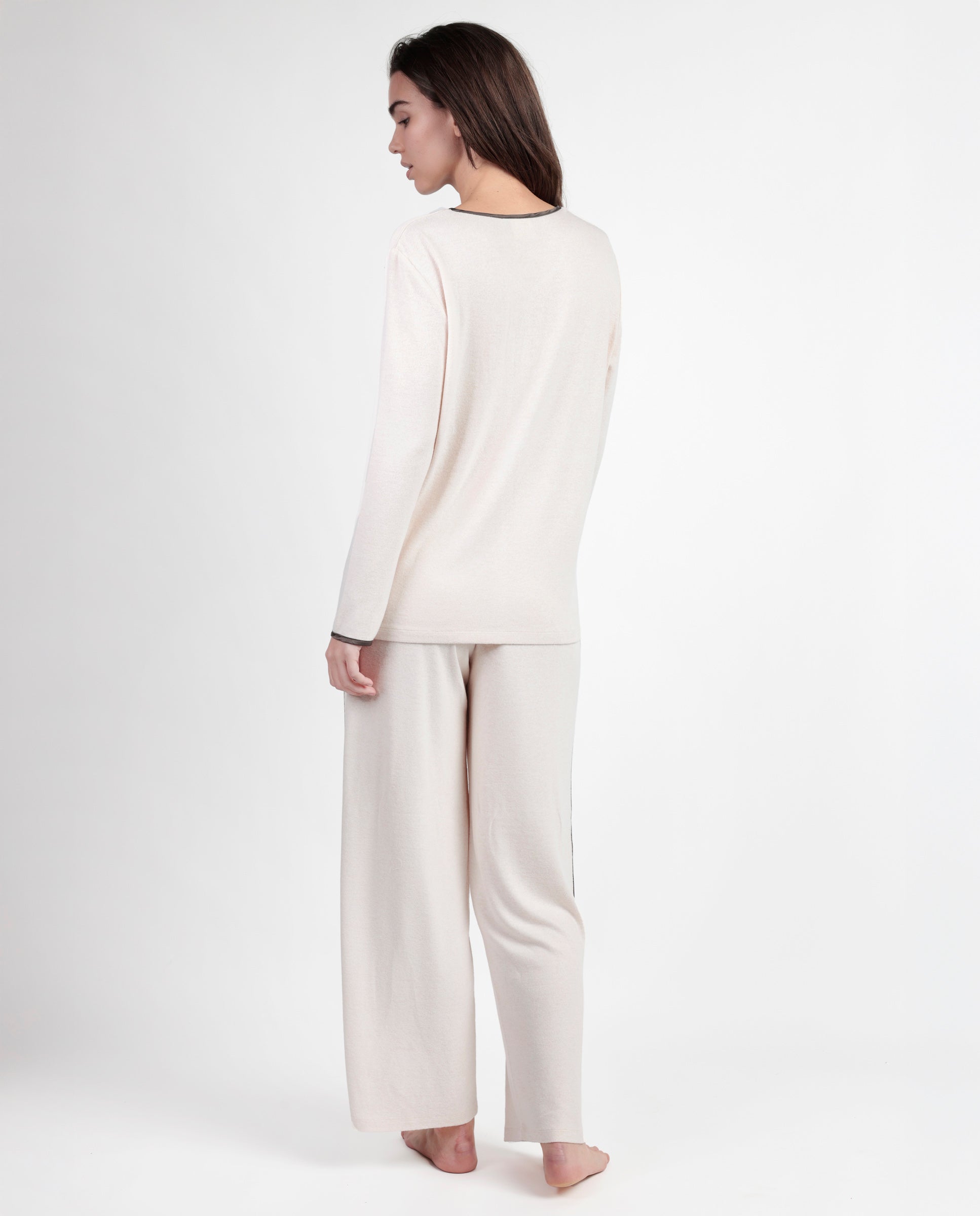 * Pijama de punto de algodón, de manga larga, cuello pico y pantalón largo.