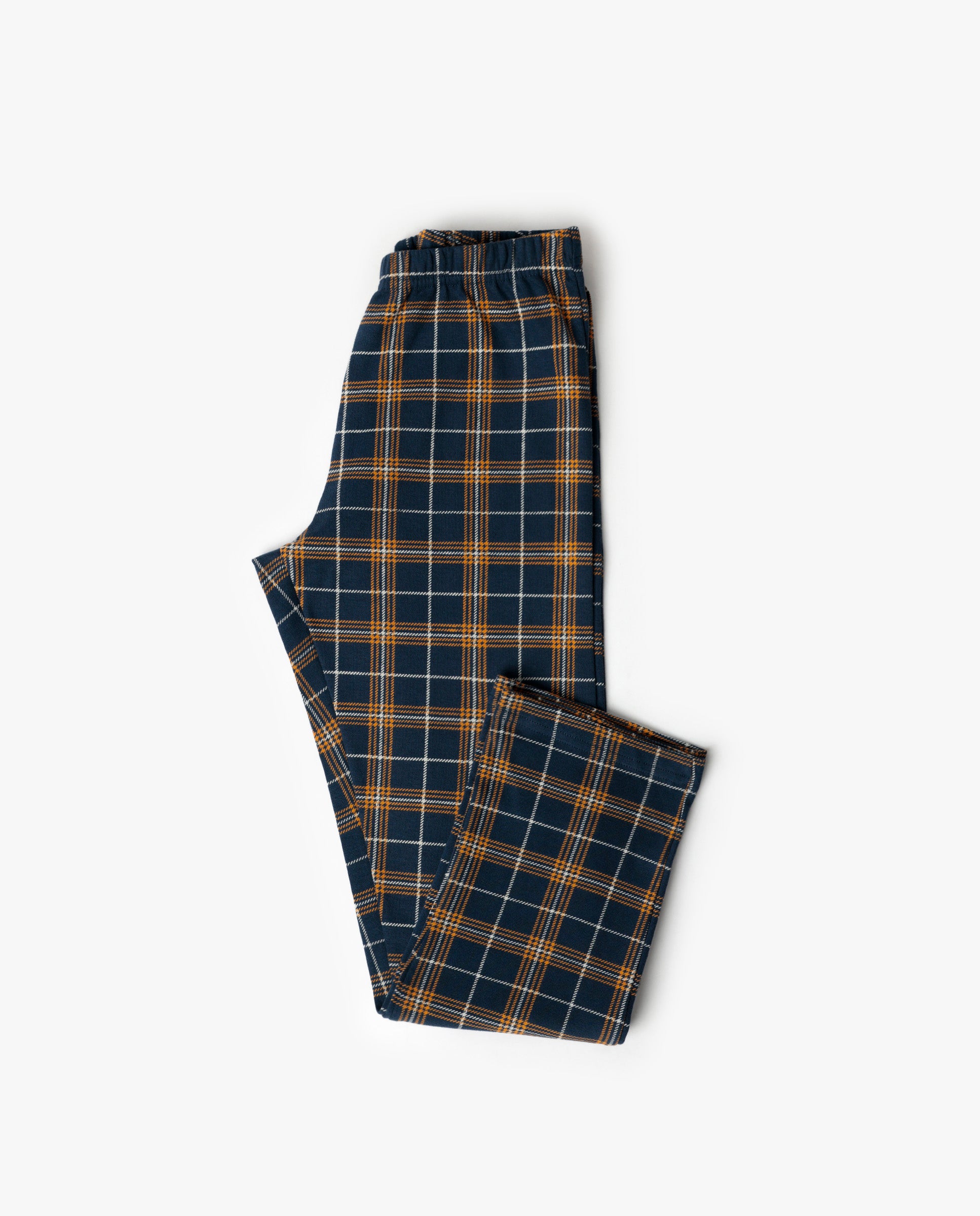 * Pijama de punto de algodón, de manga larga, cuello redondo y pantalón largo.