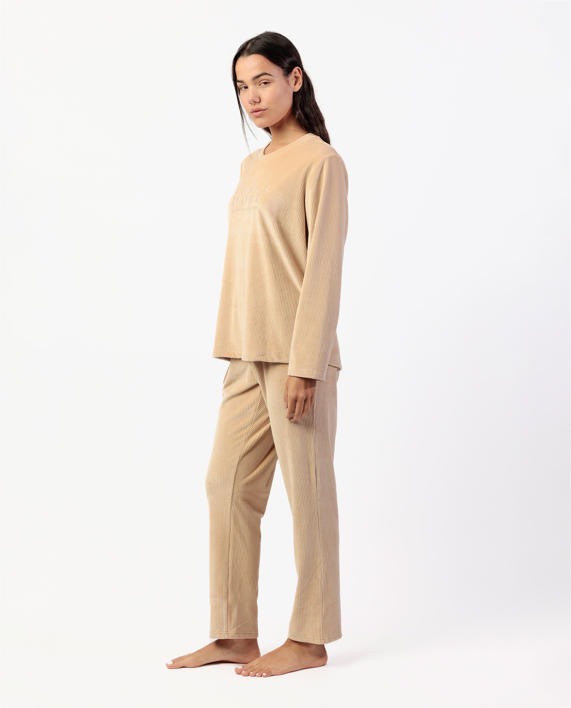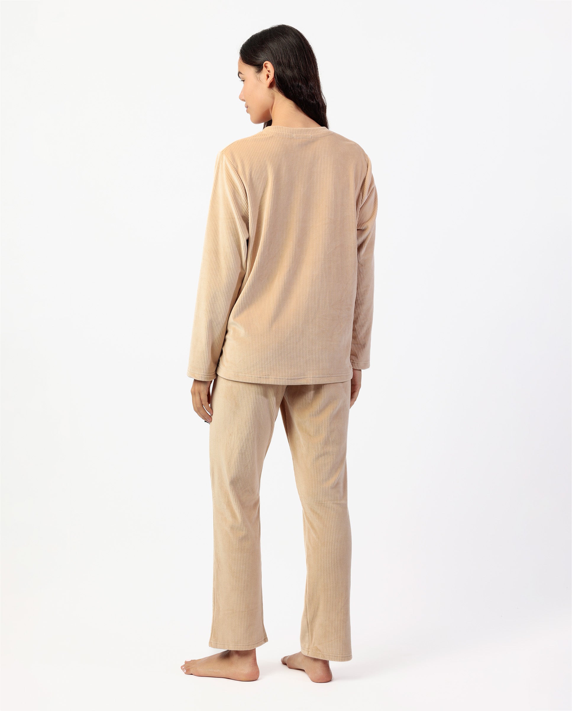 Pijama Manga Larga Terciopelo Adm Beige para Mujer