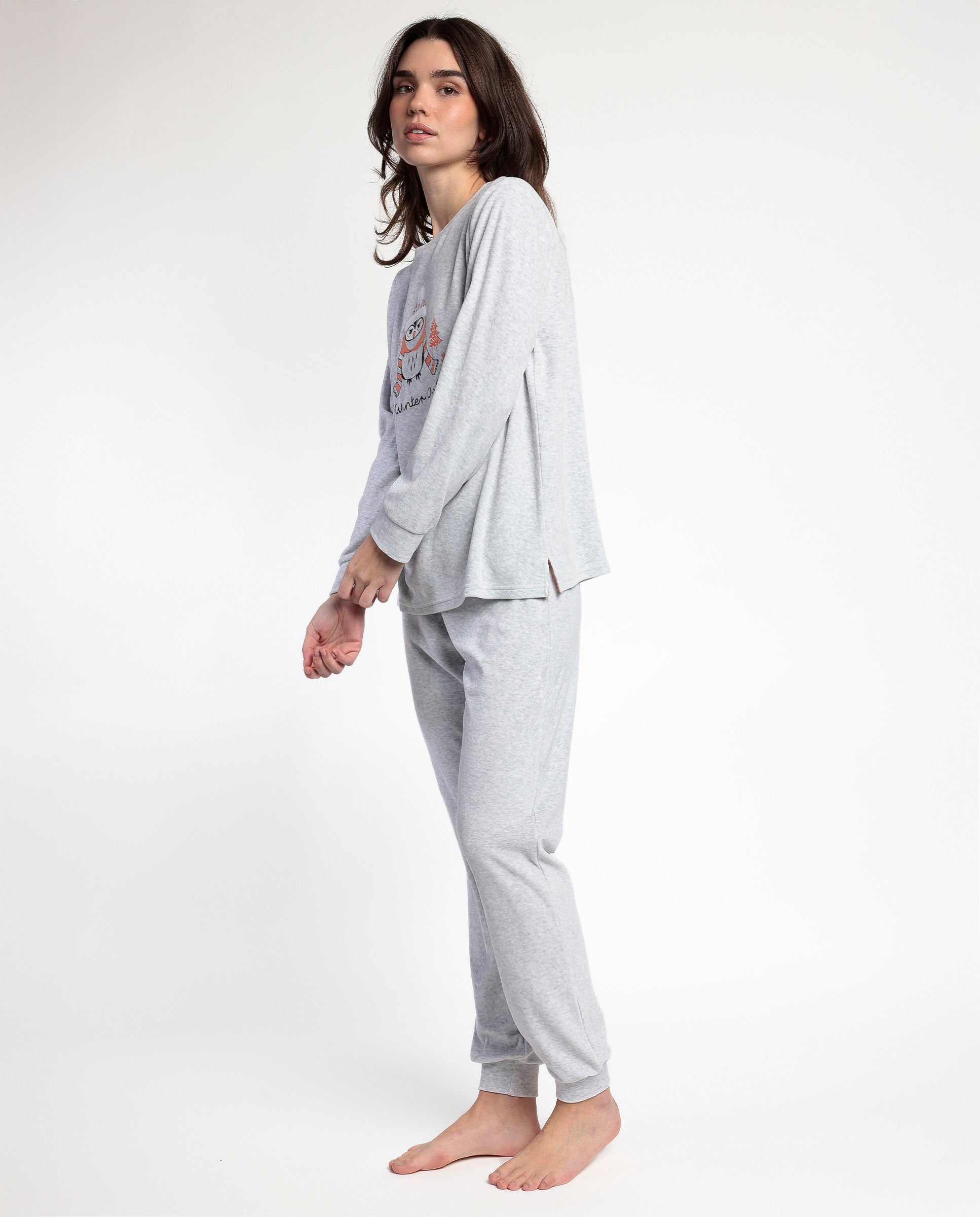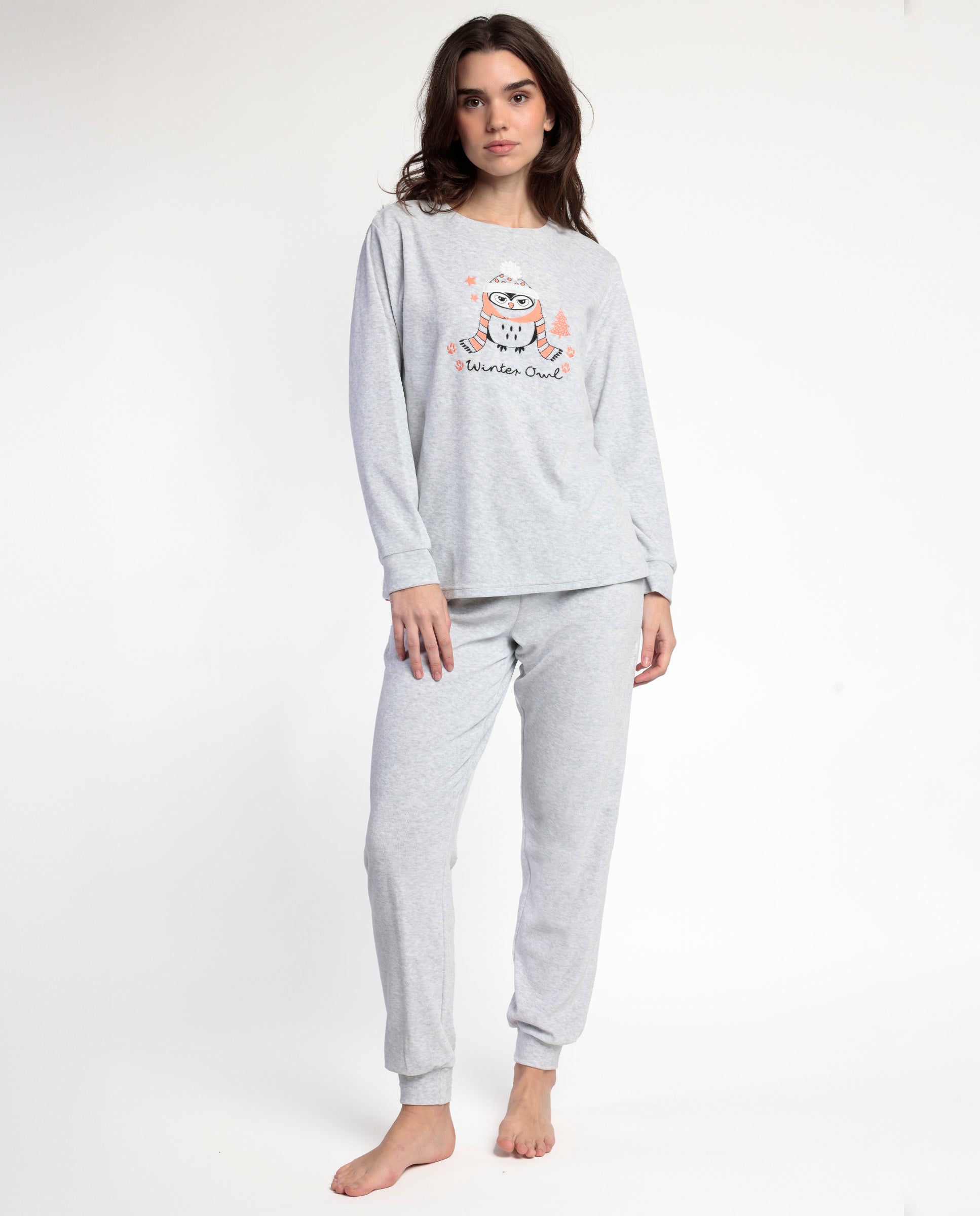 Pijama Manga Larga Terciopelo Winter Owl para Mujer