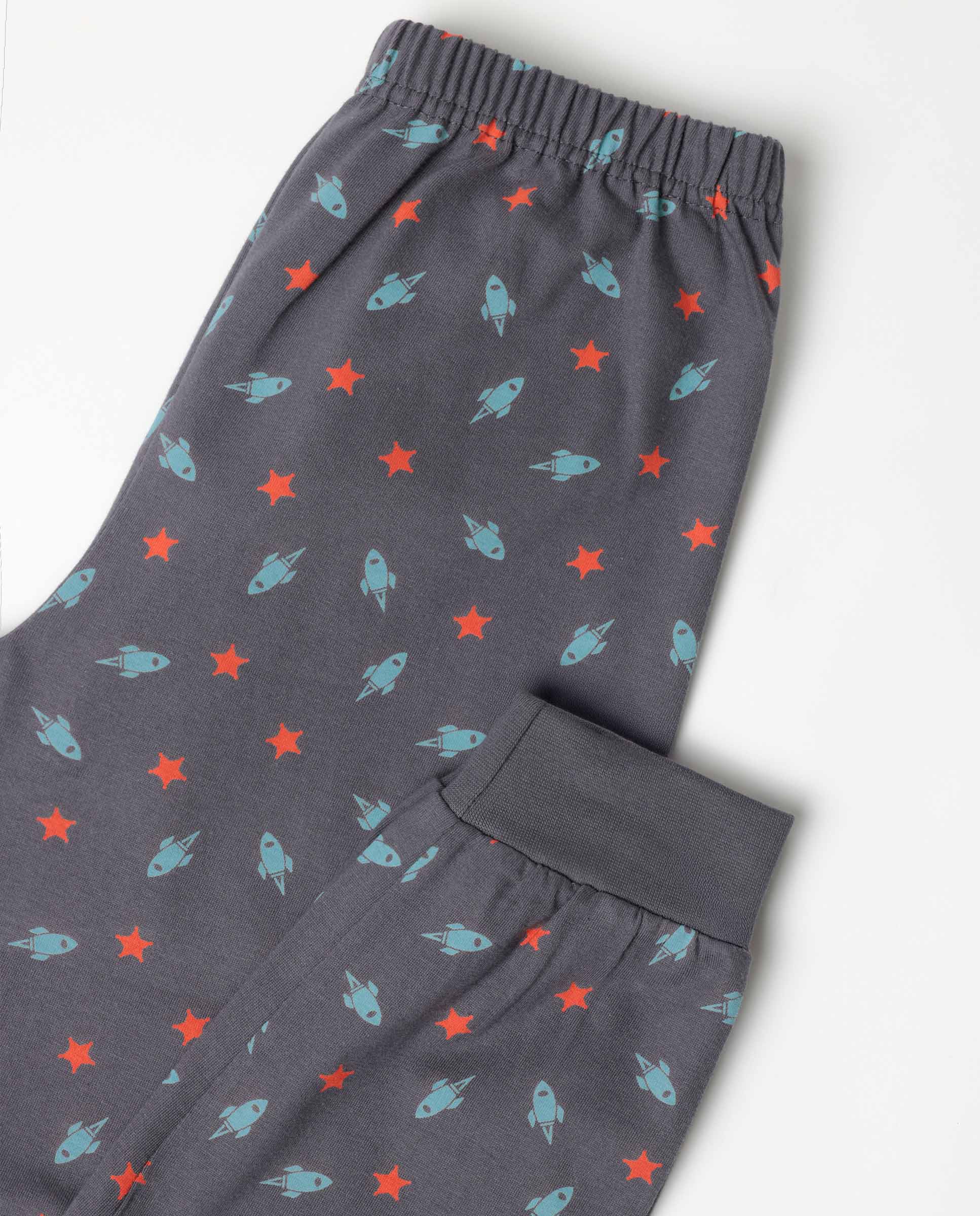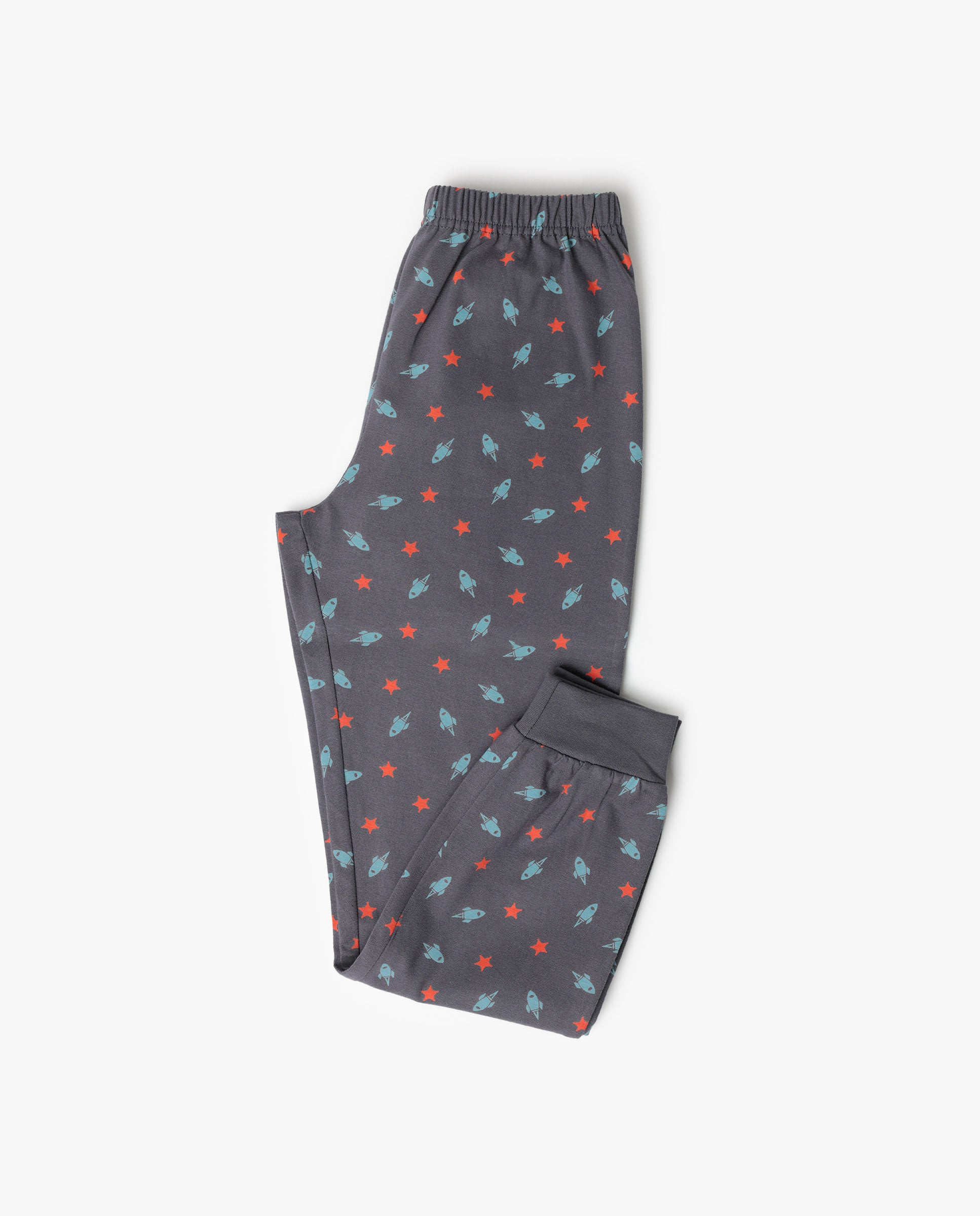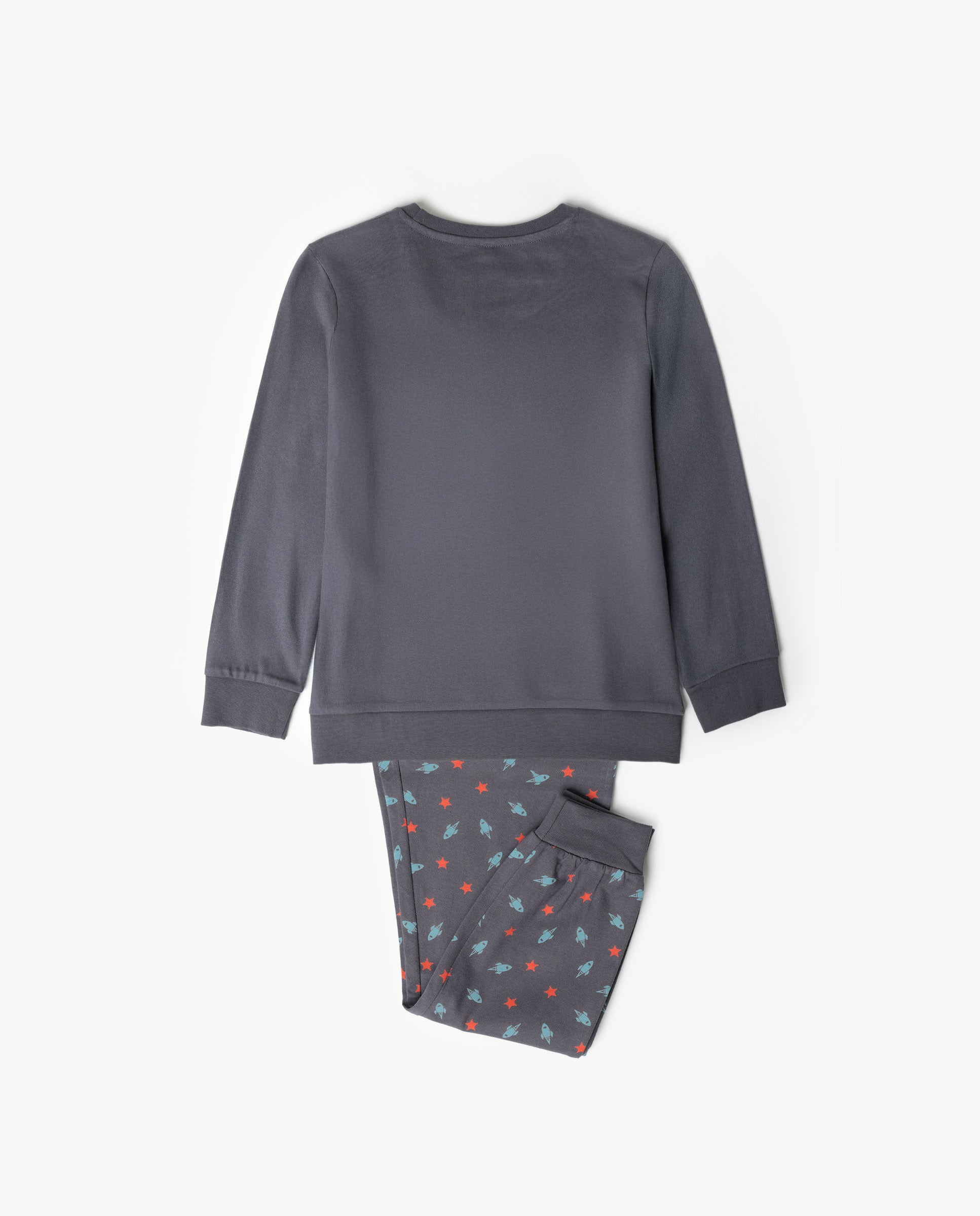 * Pijama de punto de algodón, de manga larga, cuello redondo y pantalón largo.